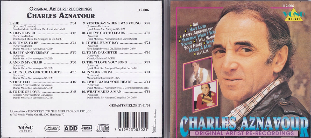 Шарль Азнавур - Перезапись оригинального исполнителя - компакт-диск