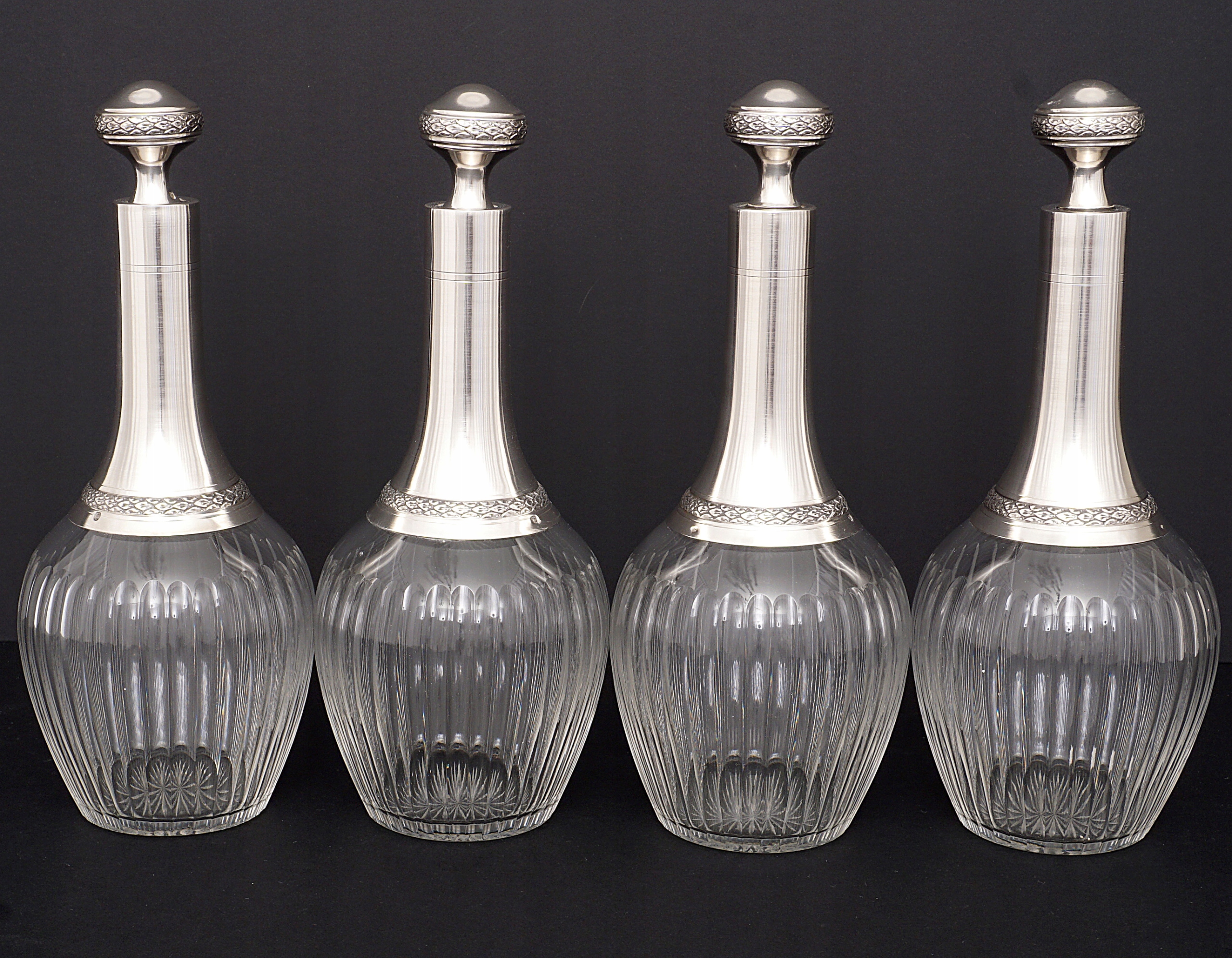 Редкий набор из четырёх хрустальных графинов в кассете.