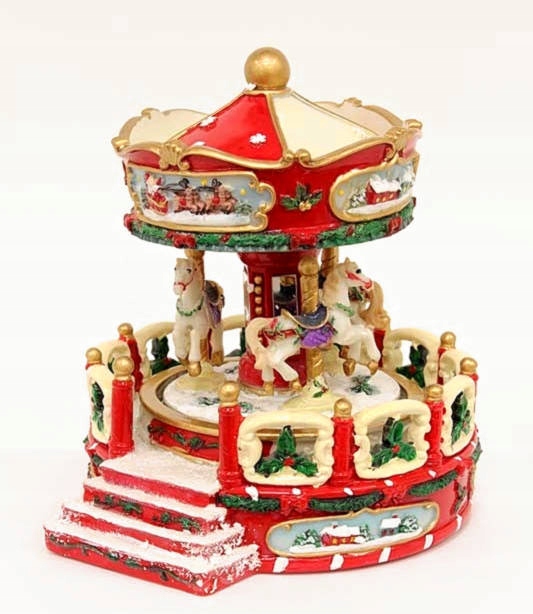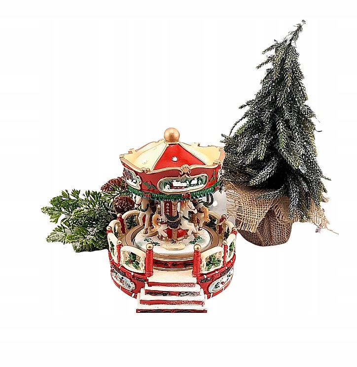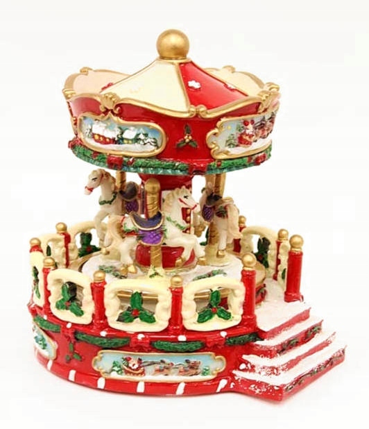 После накручивания карусель вращается и звучит мелодия «Мы желаем вам счастливого Рождества». " можно услышать.
