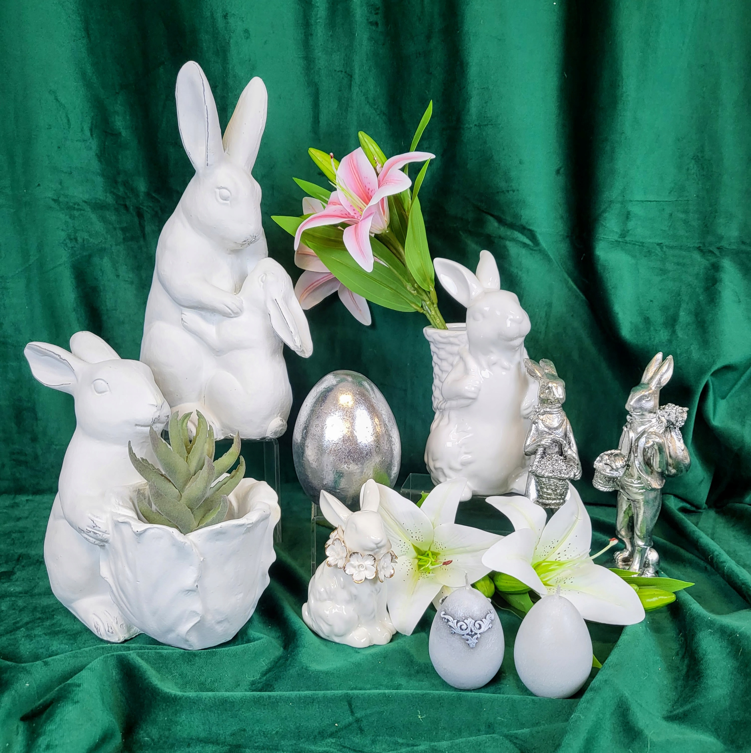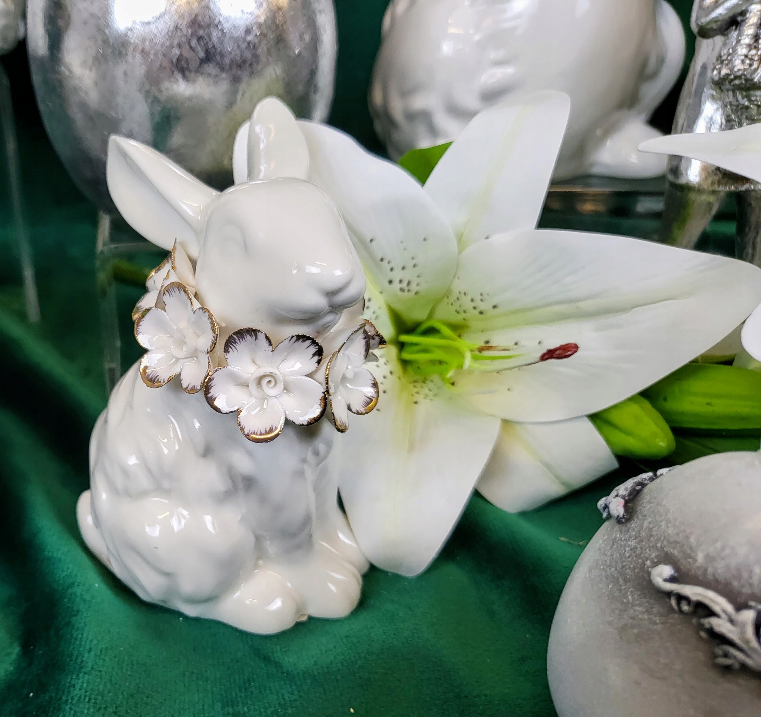 Пасхально-весенняя фарфоровая статуэтка, изображающая белого зайчика с цветами на шее. Сделанный с вниманием к деталям, он впишется в любой интерьер.