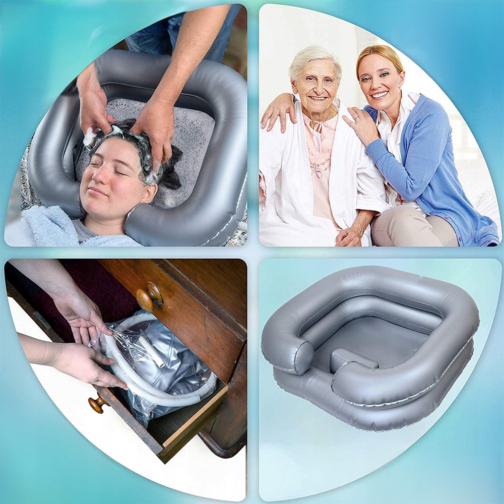 ✅ ✅Надувная раковина для мытья волос решает трудности мытья головы портативным шампунем, мыть голову на кровати легко и удобно. Он очень подходит для детей, пожилых людей и т. д. Он не только облегчает мытье волос людям в плохом состоянии или после операции, но, прежде всего, позволяет им чувствовать себя очень комфортно. Серебристый цвет легко содержать в чистоте, и, в отличие от белых раковин, не на всех из них остаются грязь и пятна.