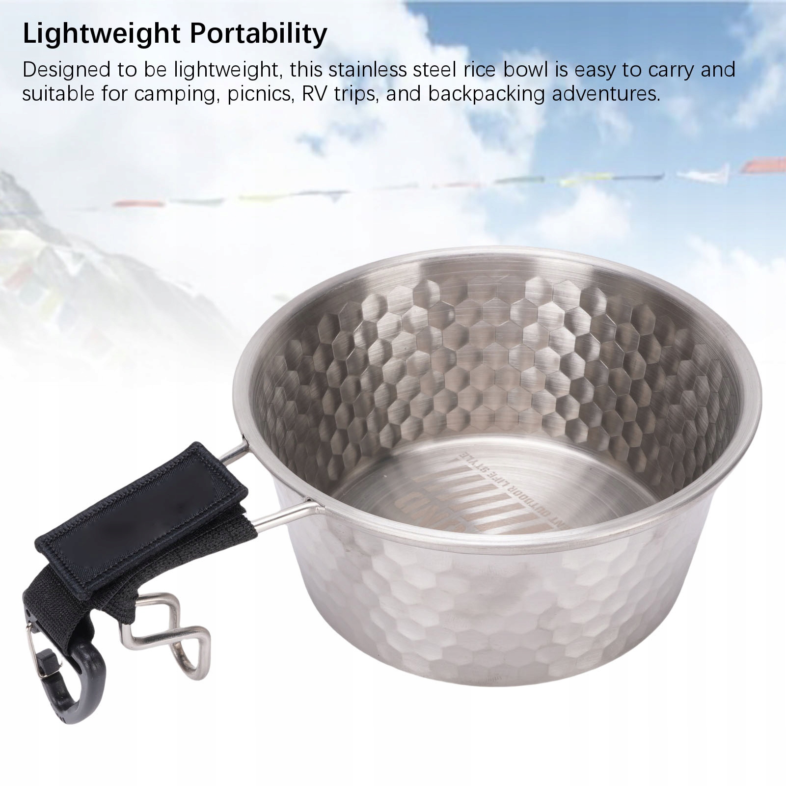 5. Легкая портативность: разработанная для того, чтобы быть легким, эта рисовая чаша из нержавеющей стали легко переносить и подходит для кемпинга, пикников, поездок и приключений с рюкзаком.