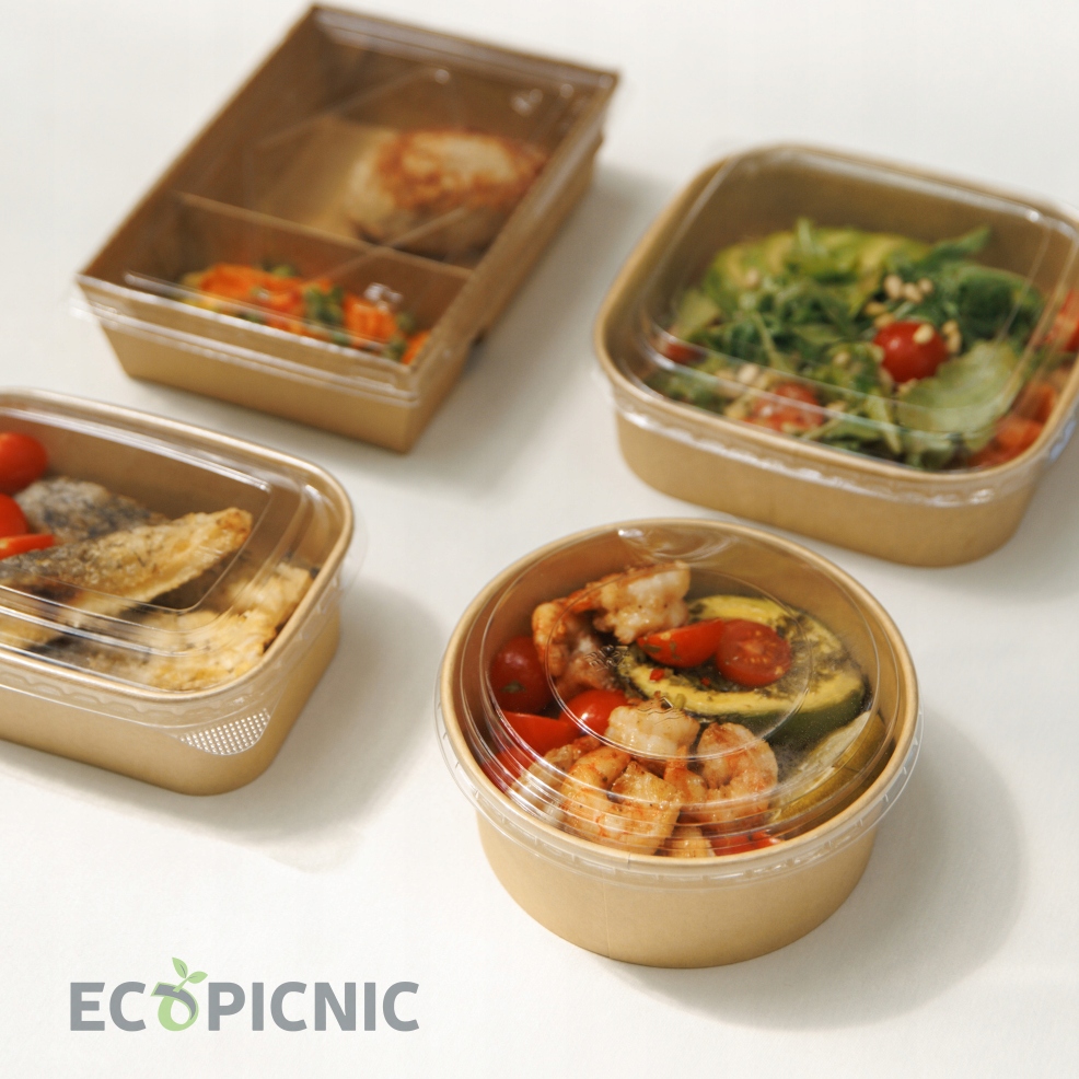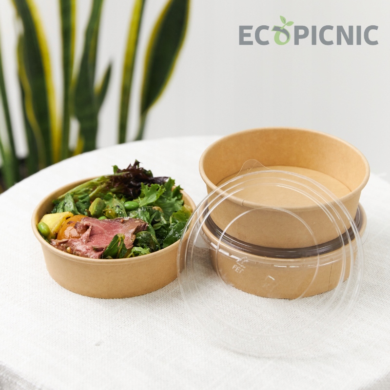 Крафт -салатная чаша многофункциональна и широко используется в ресторанах и припасах готовых блюд, сделанных из экологически чистых материалов. Это предназначено для холодных и горячих блюд. Это сделано без клея, незнакомцев нет. Контейнер может быть нагрет в микроволновой печи. Идеально подходит для доставки салатов, основных блюд, закусок, горячих блюд или упаковочных десертов.
