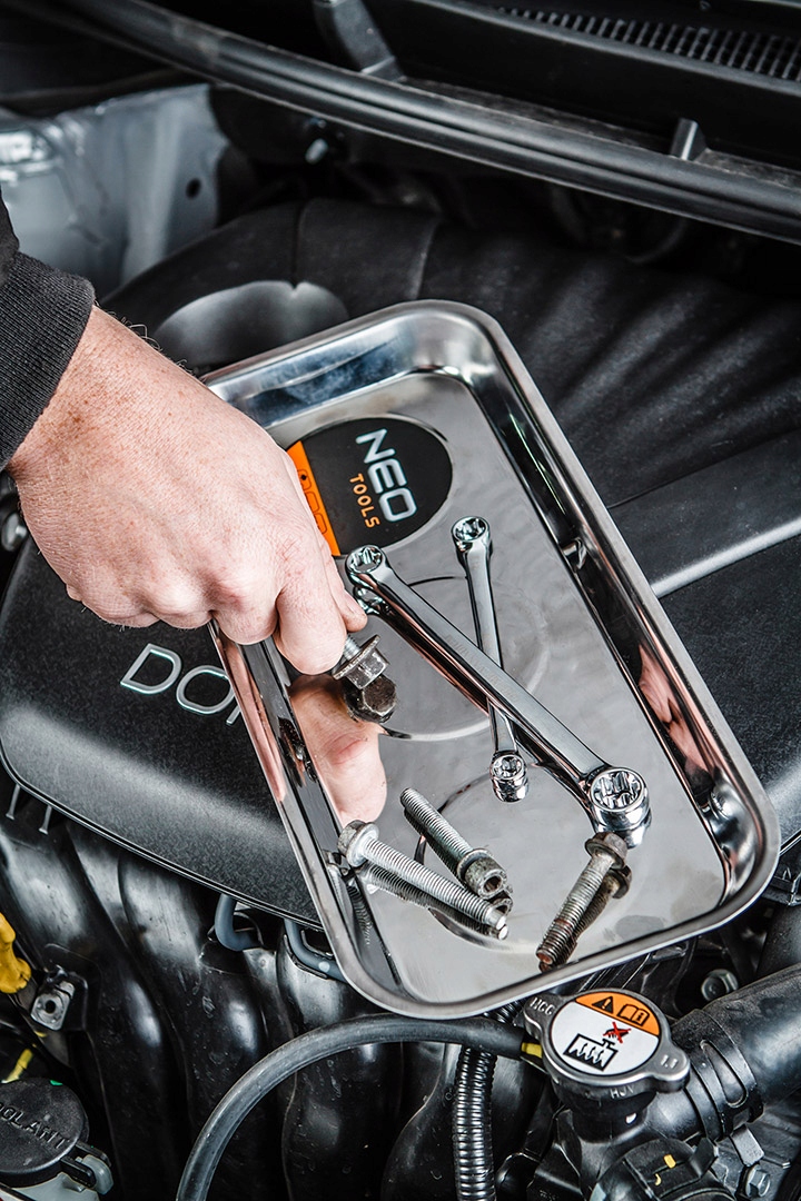 Магнитная чаша NEO (арт. 11-614), прямоугольная, размеры 245 х 145 мм, изготовлена ​​из высококачественной нержавеющей стали. Полезно в каждой мастерской. Бренд NEO оправдывает ожидания профессионалов.