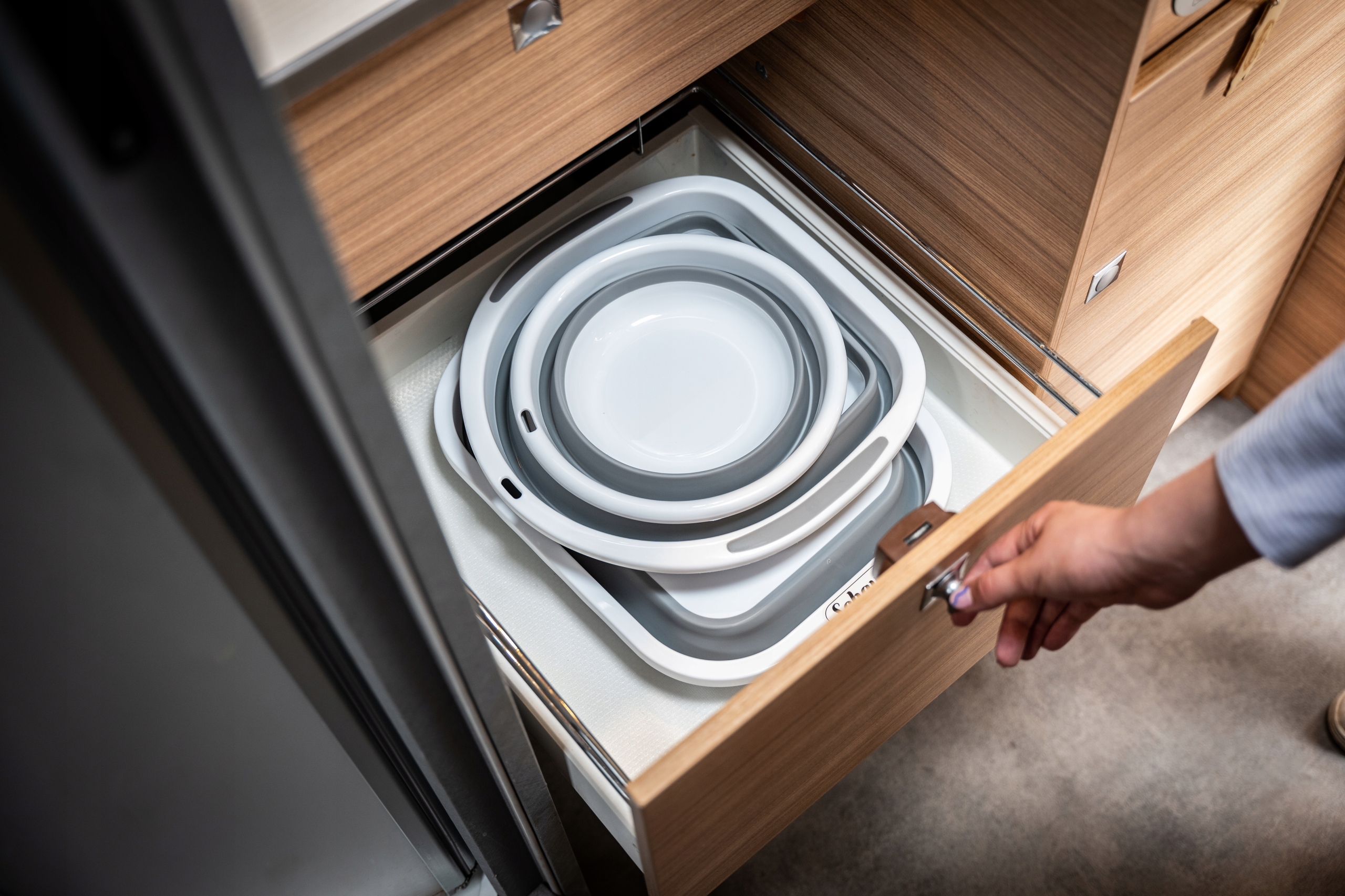 ➡️ Занимает мало места: Благодаря складной конструкции чаша не занимает много места, что особенно полезно в небольших смесительных помещениях, в автомобиле или кемпинг.