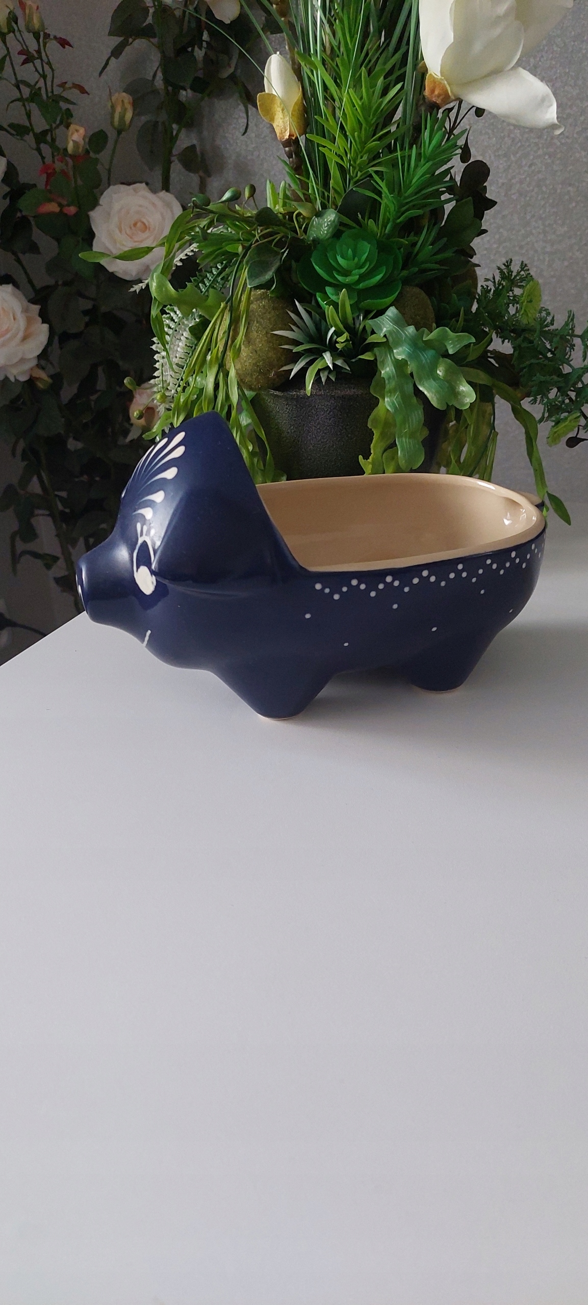 Керамическая чаша в очень хорошем состоянии с высотой размеров 15 см, длина 23 см, ширина 14 см.
