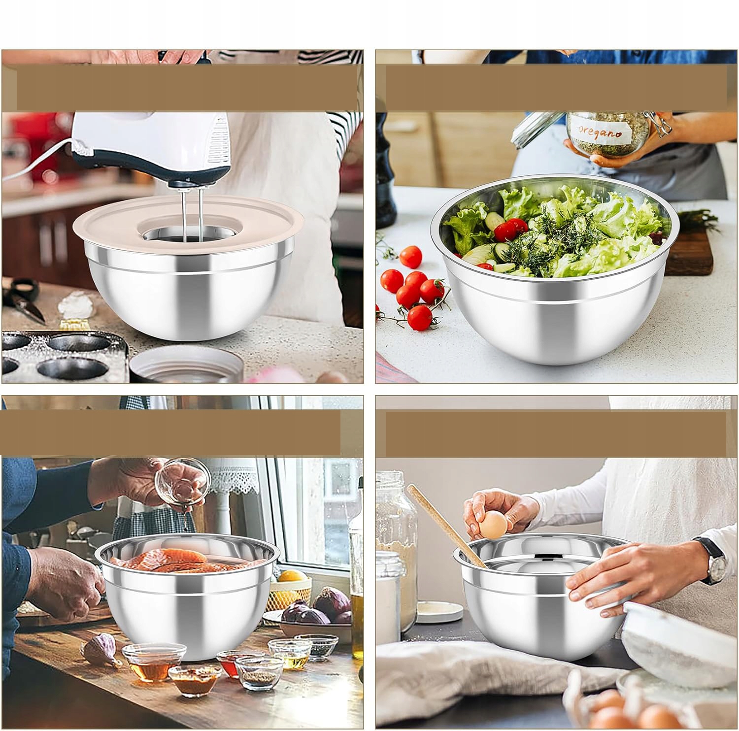 Миски из нержавеющей стали с крышкой, мисками, салатной миской