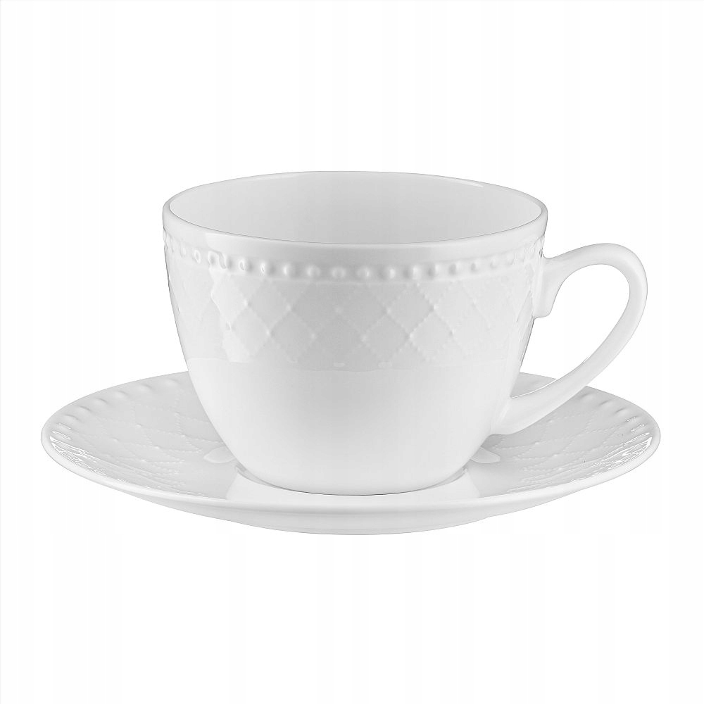 Фарфоровая чашка с блюдцом из коллекции рома. Рома -это фарфор с высоким классом, характеризующийся оттенком молока белого цвета. Блюда отличаются слегка выпуклым рисунком в виде тонкого кружева или решетки. Рома фарфоровая линия сочетает в себе элегантность и комфорт использования. Белые чашки рома отлично подходят для повседневного использования. Коллекция также включает в себя ужины, чашки для завтрака и чашки