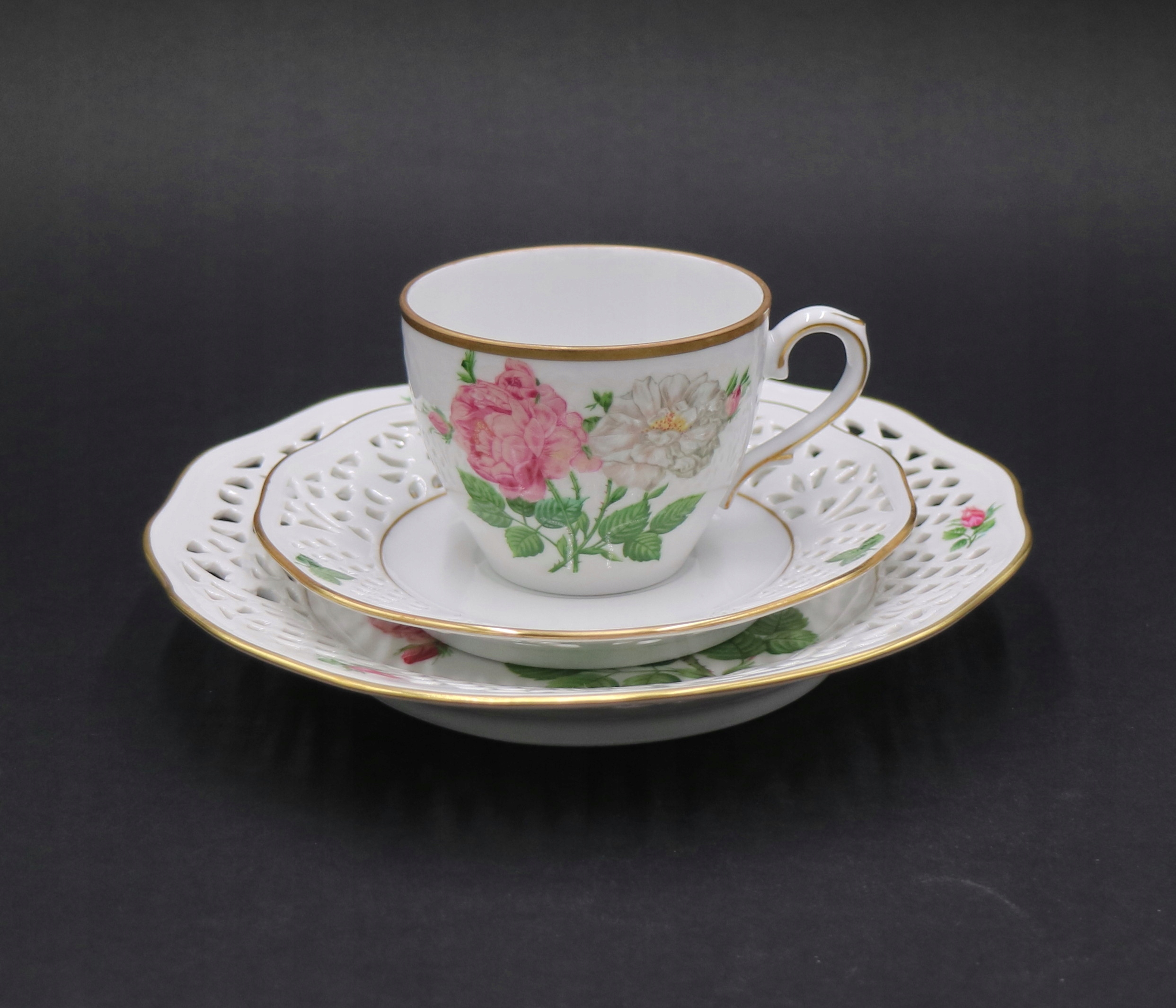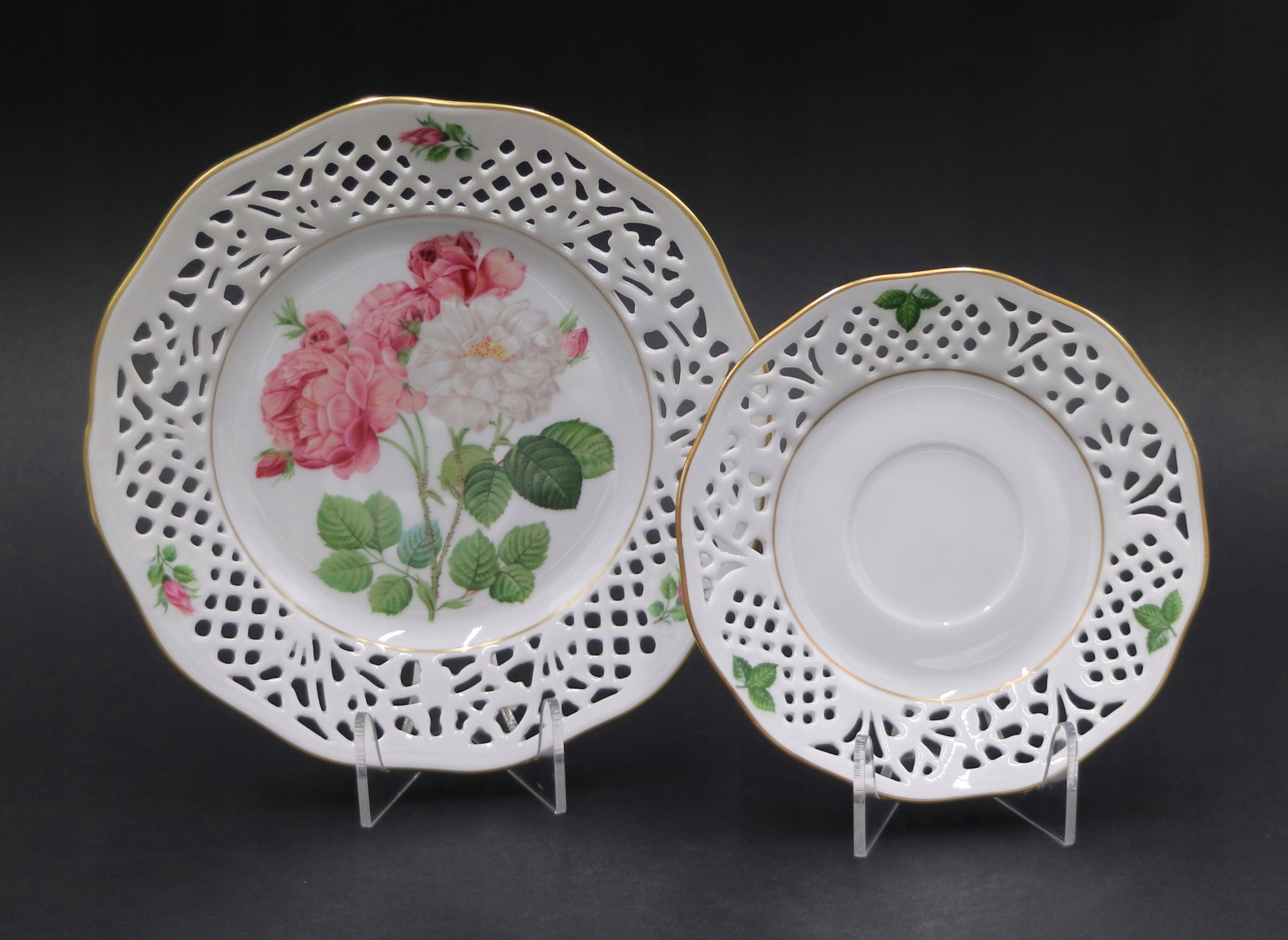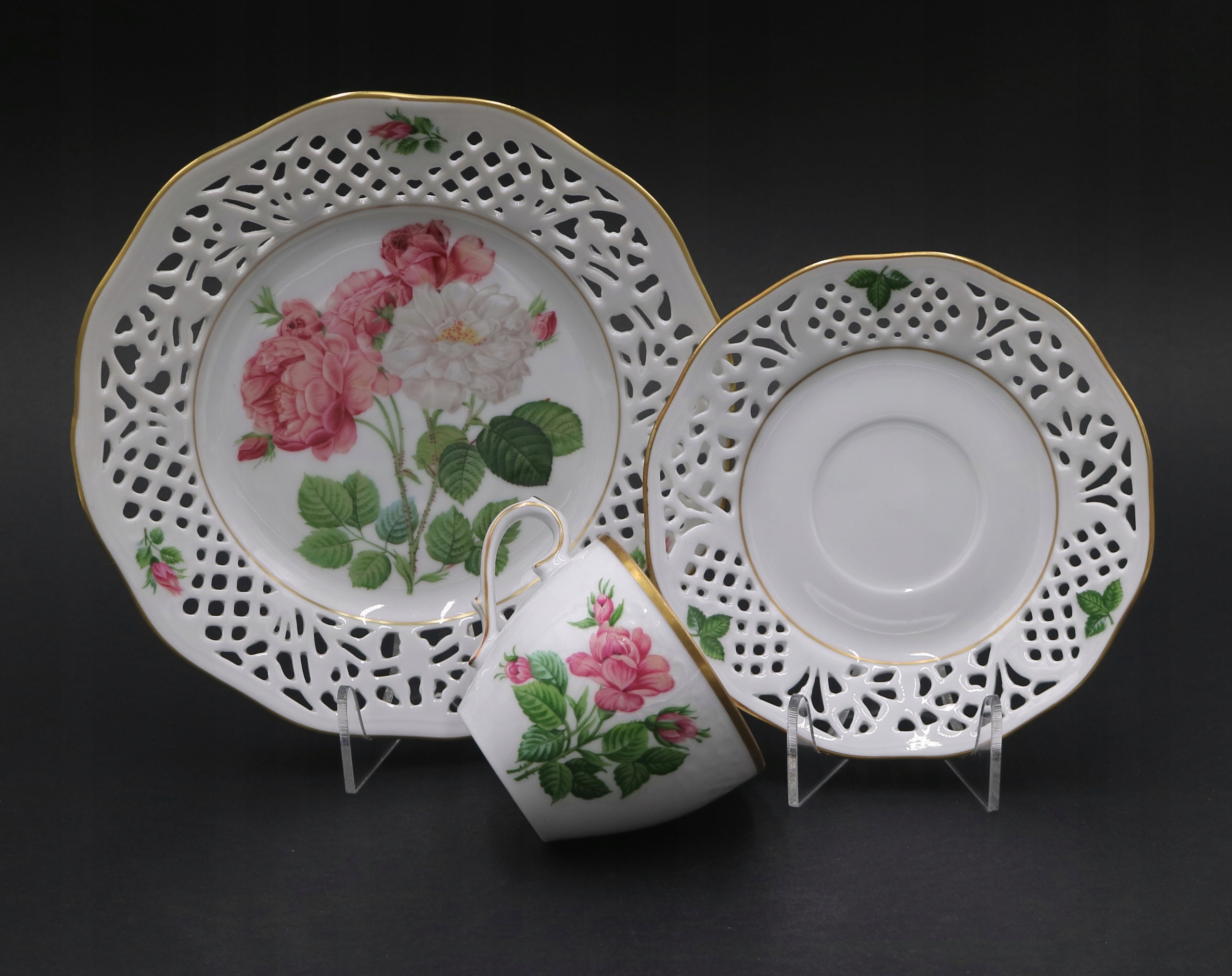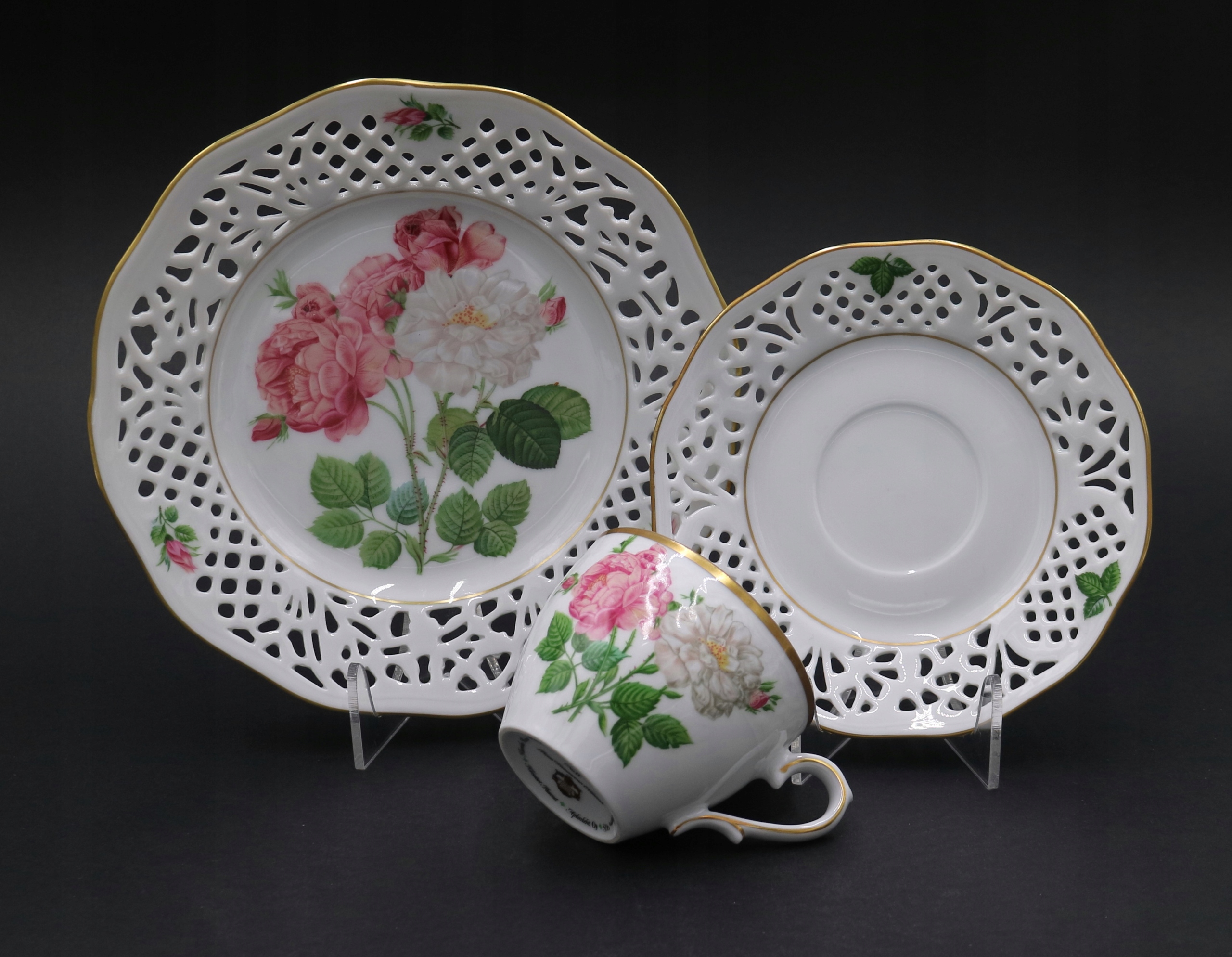 Белый фарфор, очаровательно украшенный мотивом розы. Все выглядит великолепно.