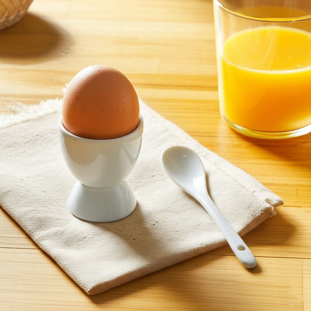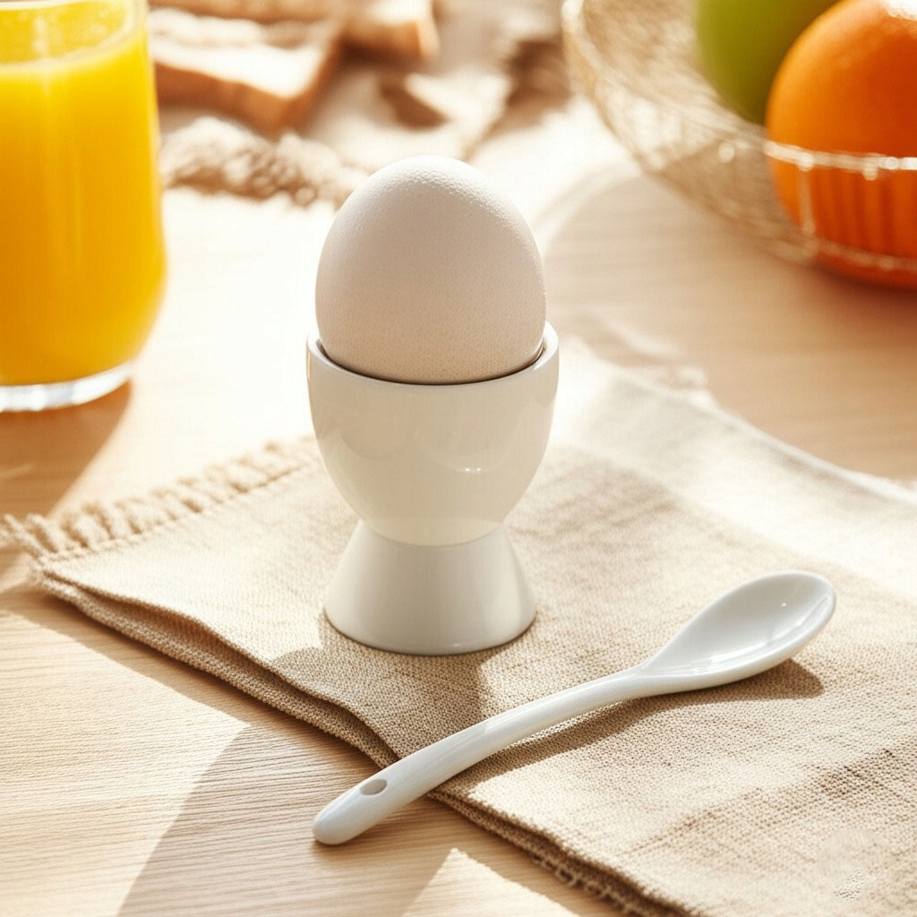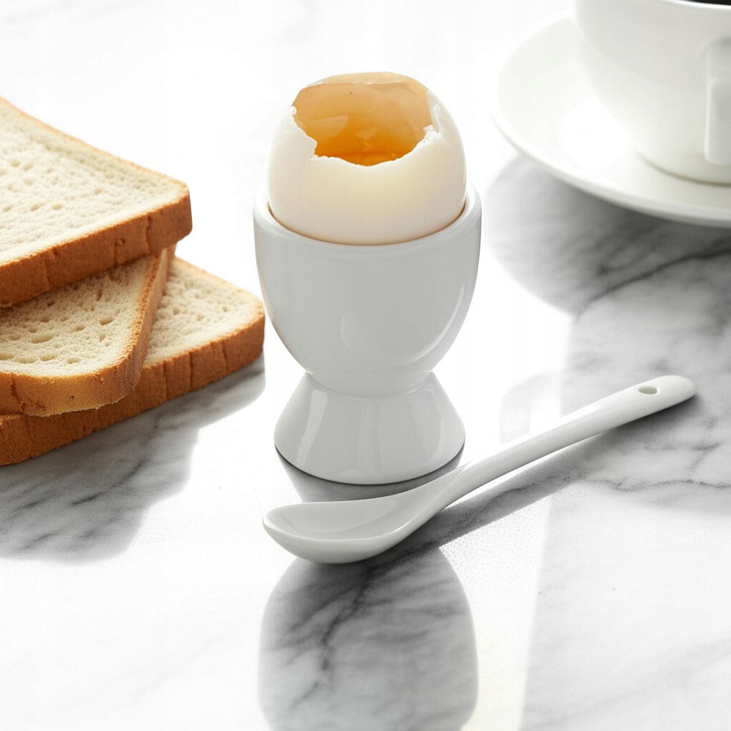 Элегантный набор из 4-х фарфоровых подставок для яиц с ложками в тон — стильный способ подачи яиц всмятку. Минималистичный дизайн, высокое качество изготовления и идеально подходящие размеры делают его идеальным для повседневного использования и для особых случаев.