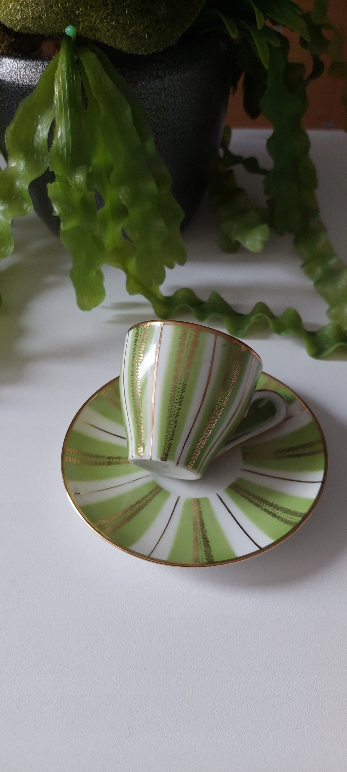 Размеры чашки: высота 5 см, диаметр чаши 6 см, диаметр тарелки под чашку 11 см. На фото табличка имеет производственную ошибку, в остальном она в очень хорошем состоянии.