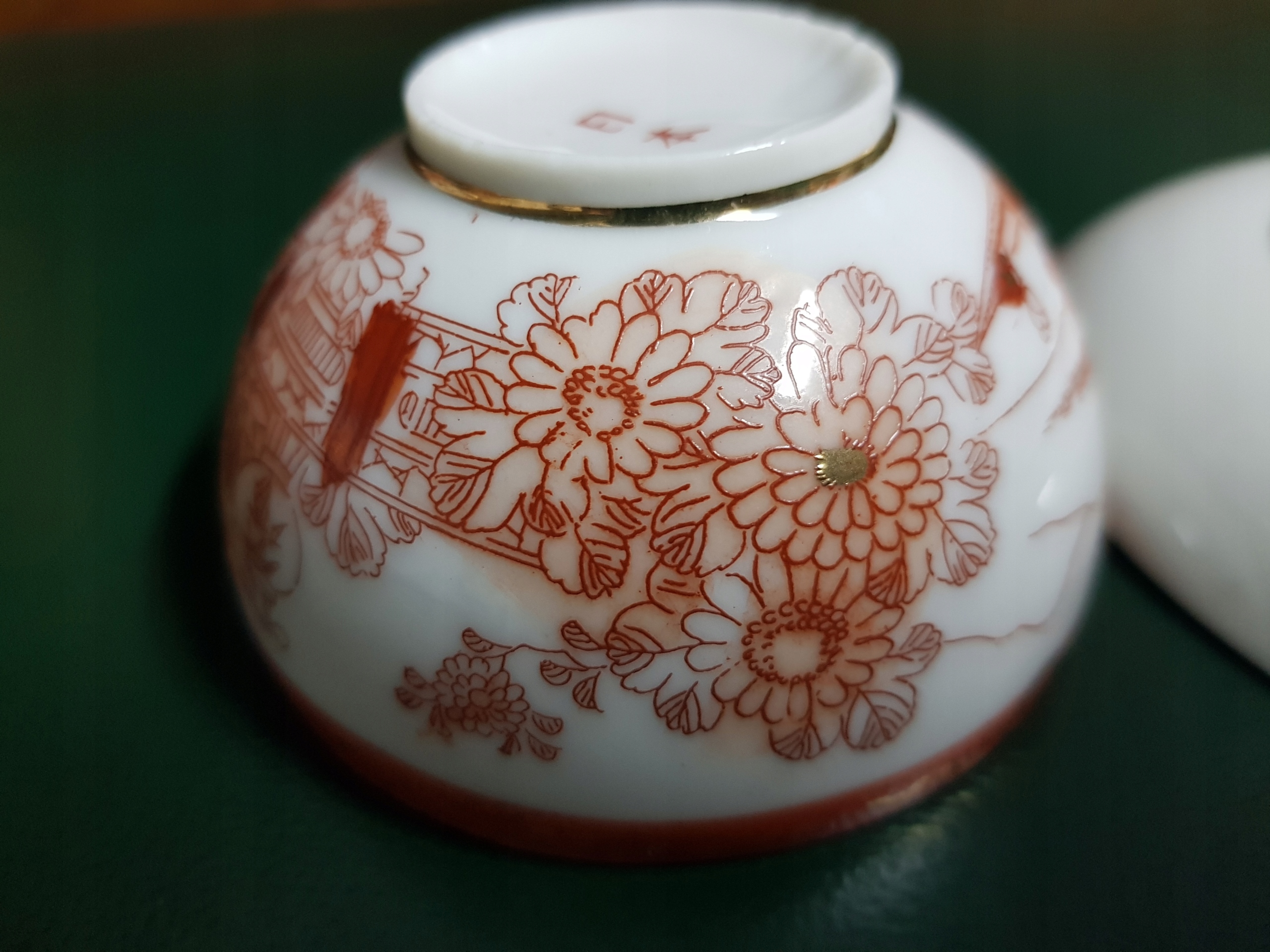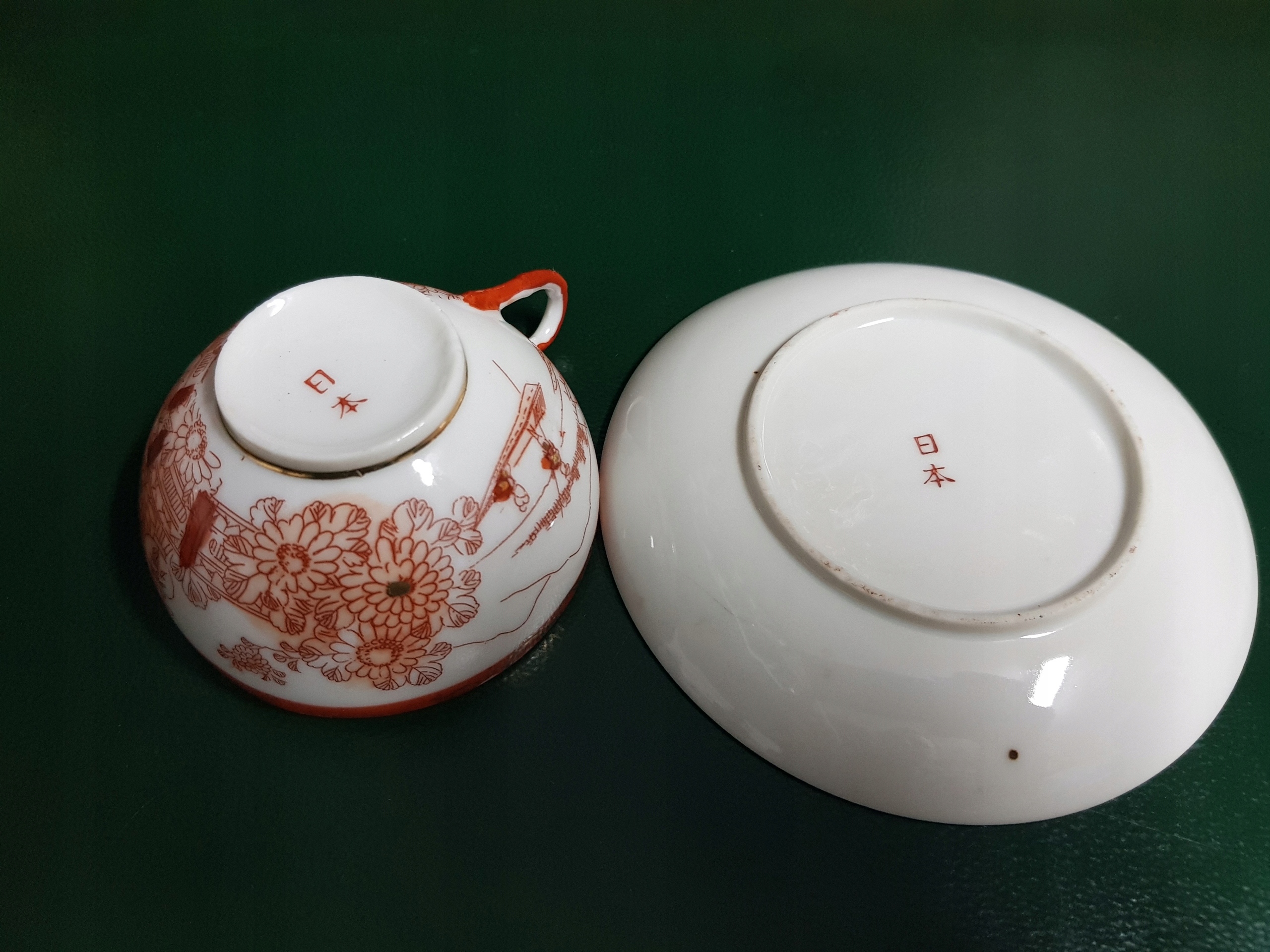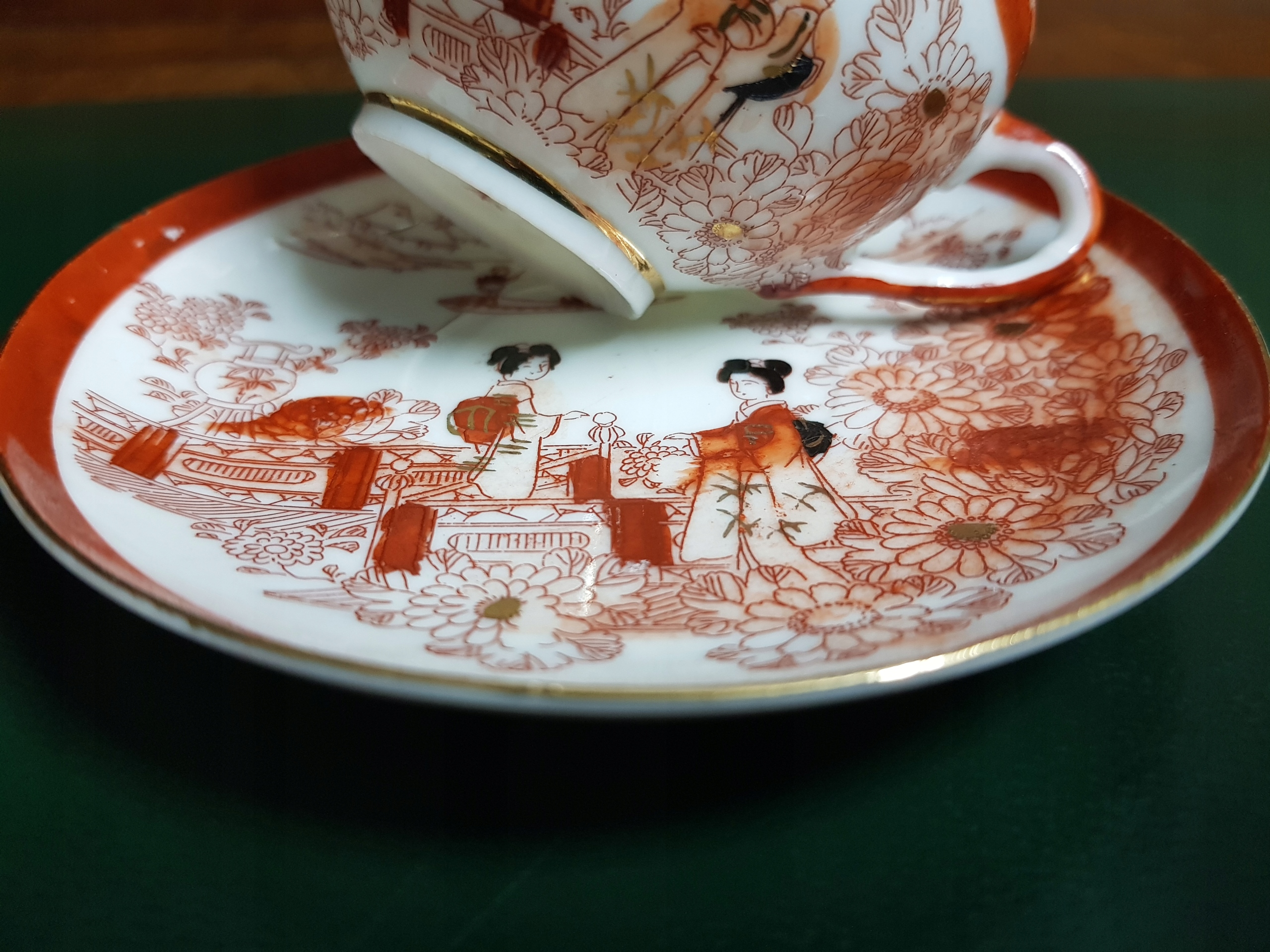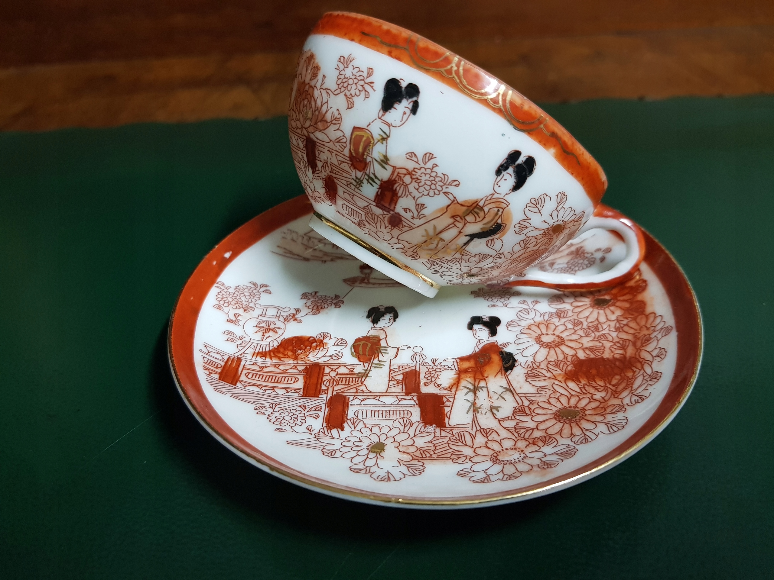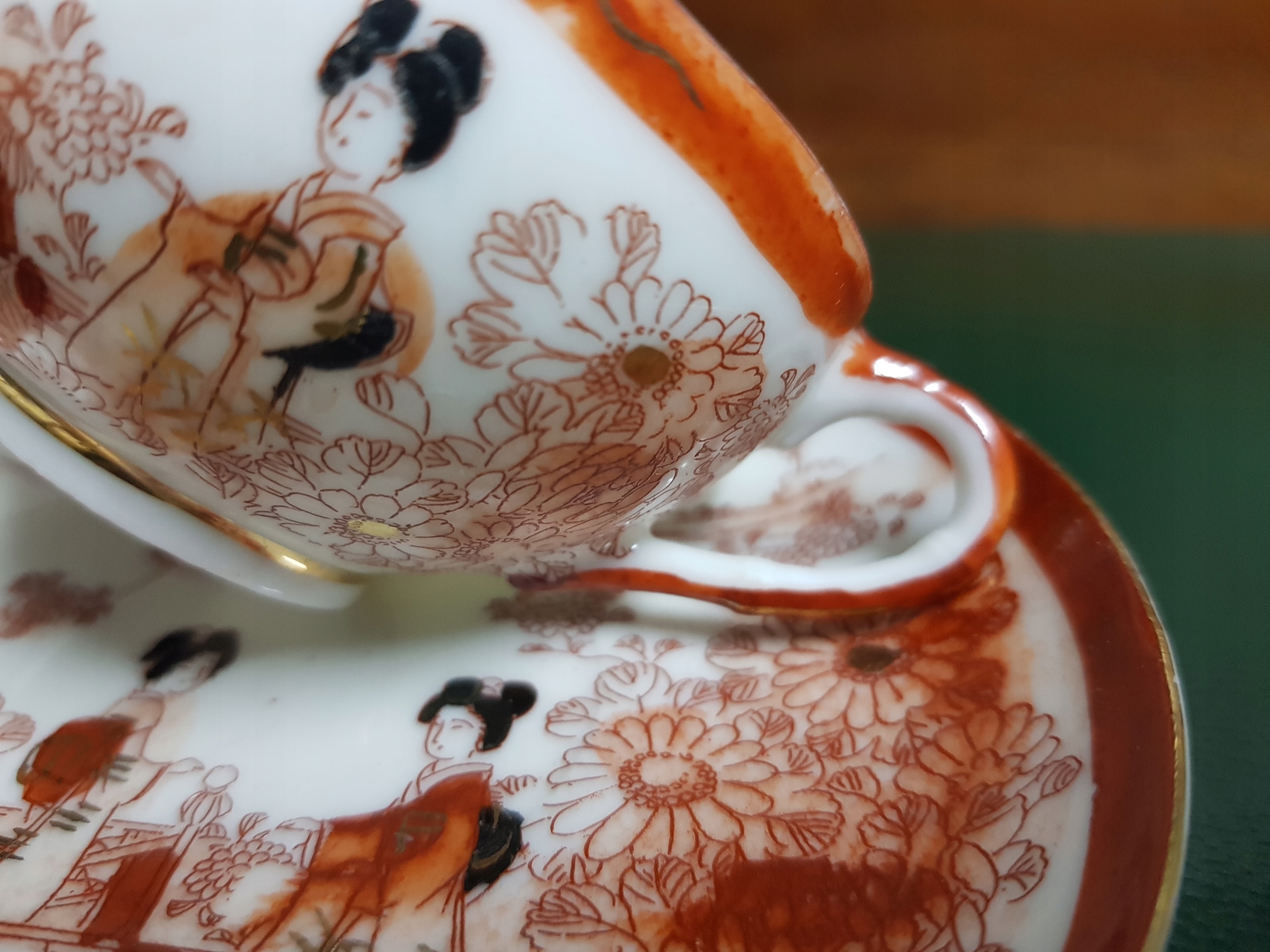 Предмет аукциона — чашка и блюдце с нарисованными вручную сценами гейш.