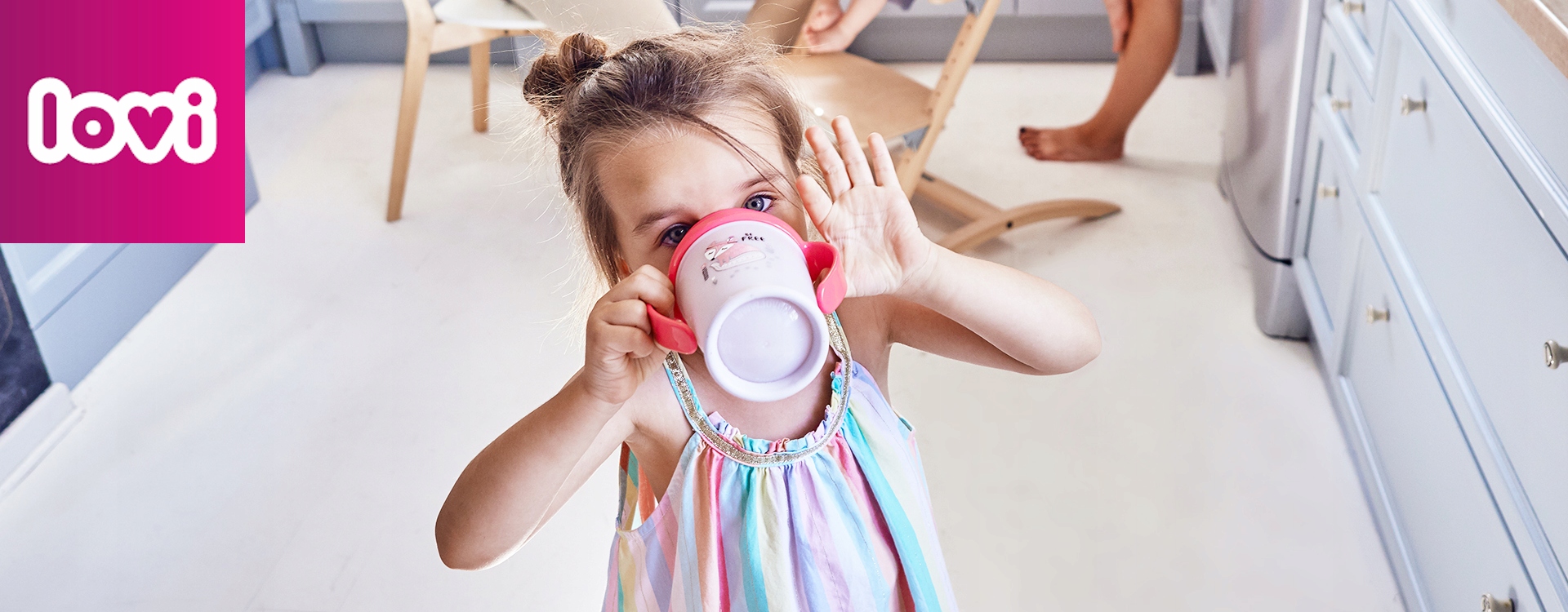 После чашки 360°Drink Master 9 м+ следующим этапом обучения пить может стать чашка LOVI Freestyle 11 м+ с соломинкой.