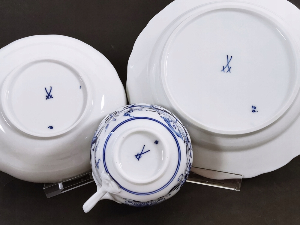 Сервиз подписан под глазурью знаком Мейсен - (скрещенные мечи, 1 сорт) Мейсенской Мануфактуры (Мейсен).