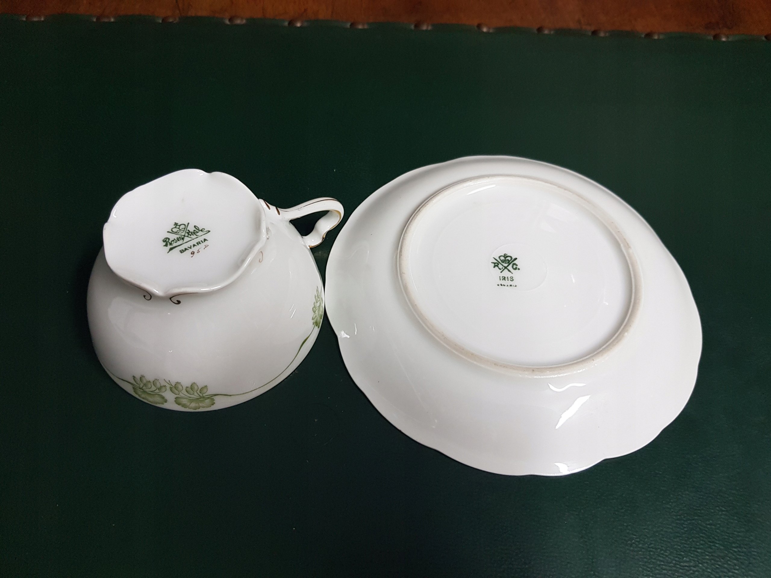 Предмет аукциона — чашка и блюдце Rosenthal Irys. Различные маркировки чашки и блюдца. Около 1900 года?
