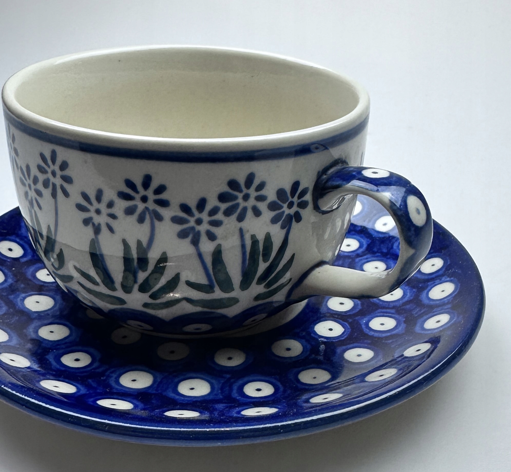 Чашка з блюдцем, кераміка, квітковий мотив Bolesławiec PRL 2