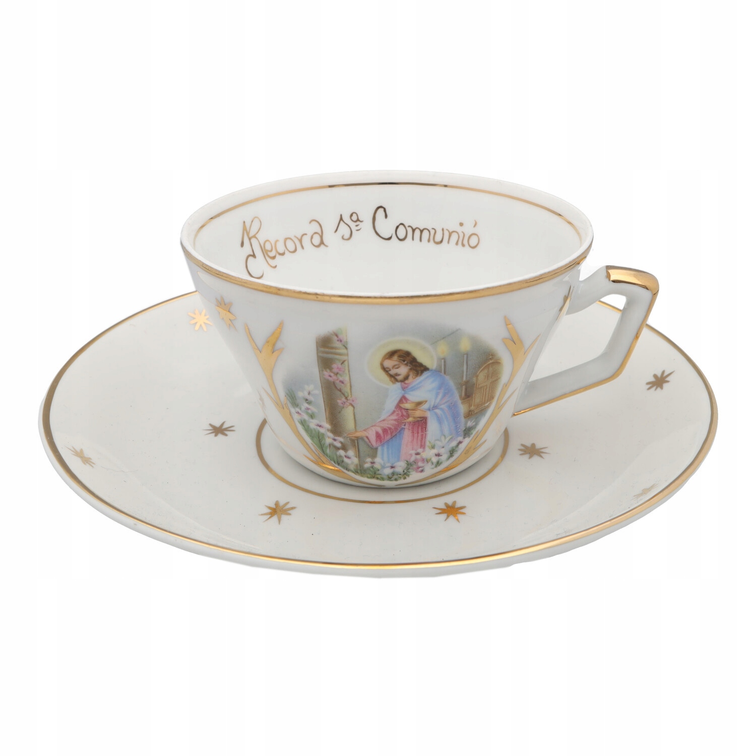 Фарфоровая чашка второй половины 19 века. 20 век – сувенир Святого Причастия. Размеры: высота 6 х 10,5 см, блюдце 18 см. Незначительные следы использования..