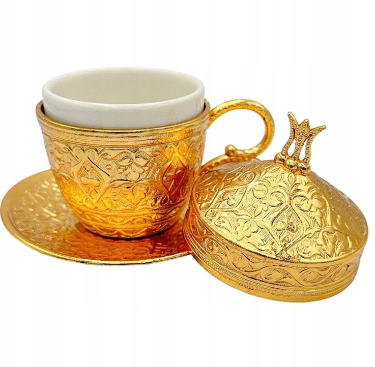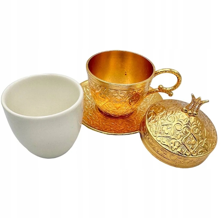 чашка с блюдцом b> для турецкого кофе. Это уникальная модель в османском стиле, украшенном турецкими мотивами. Кубок состоит из четырех частей: блюдца, корзина. крышка и фарфоровая вставка.