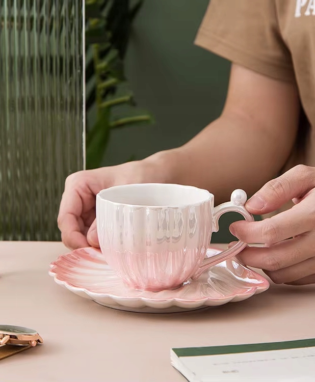 Фарфоровая чашка с блюдцем - линия: Sea Treasure: PINK