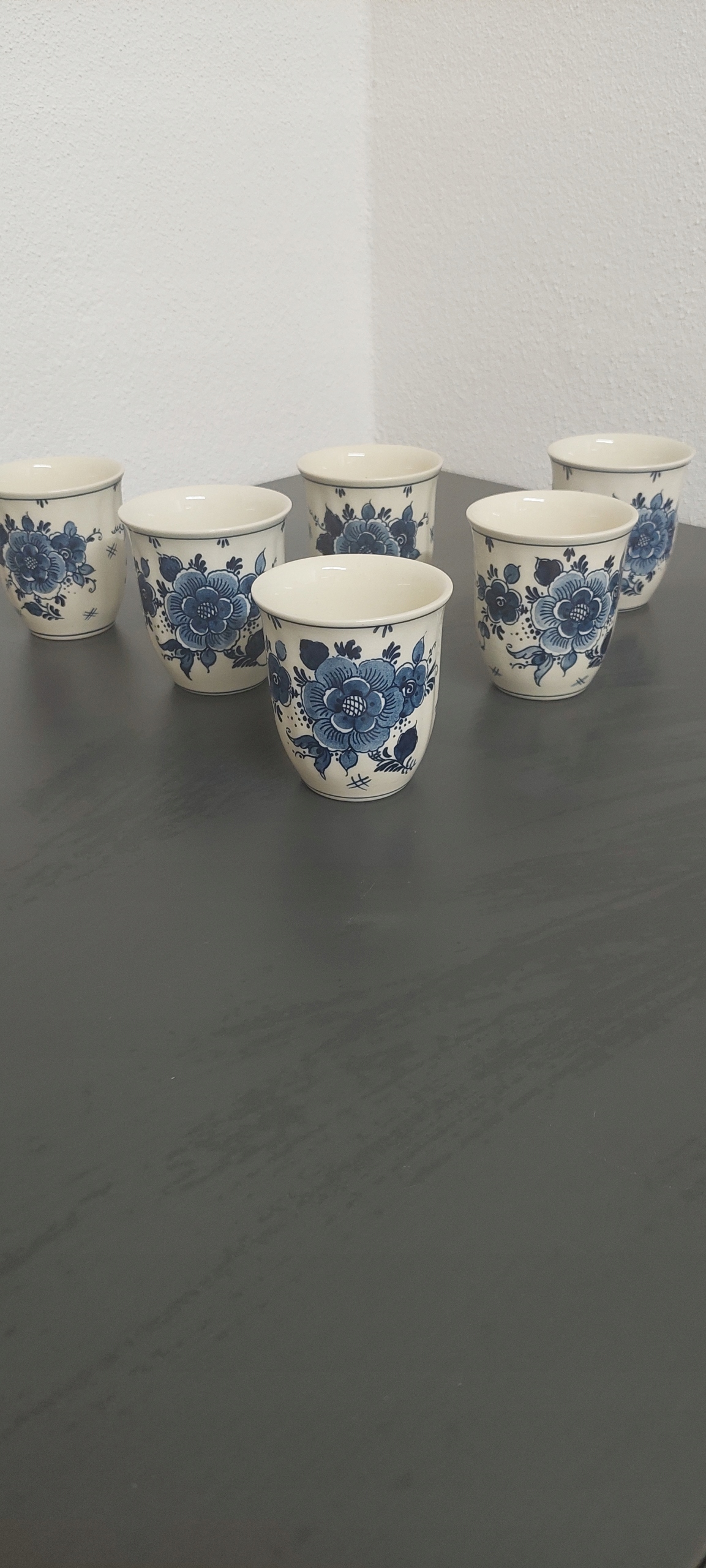 Шесть чашек делфта в очень хорошем состоянии с высотой размеров 8,5 см, диаметром чаши 7,5 см.