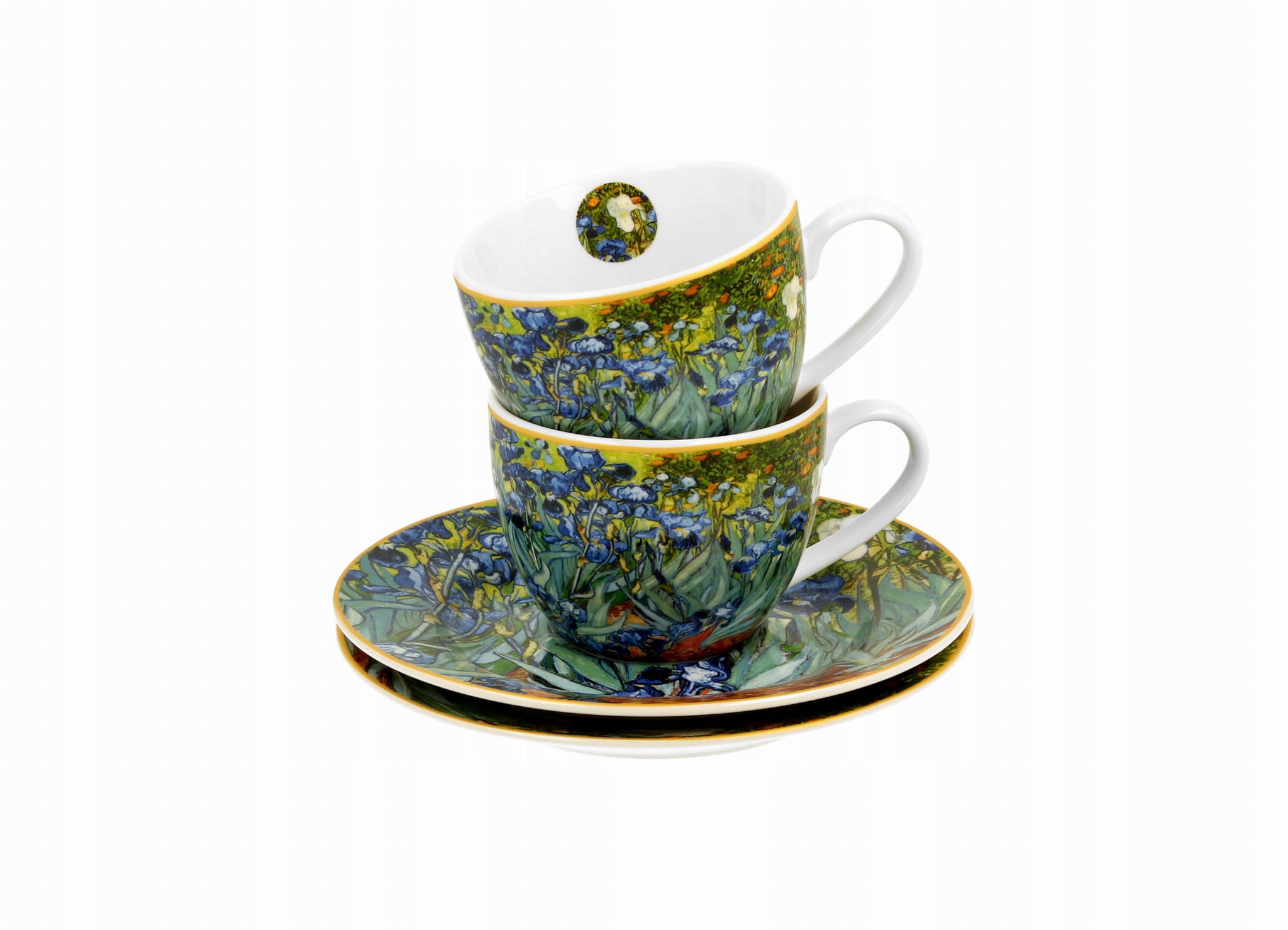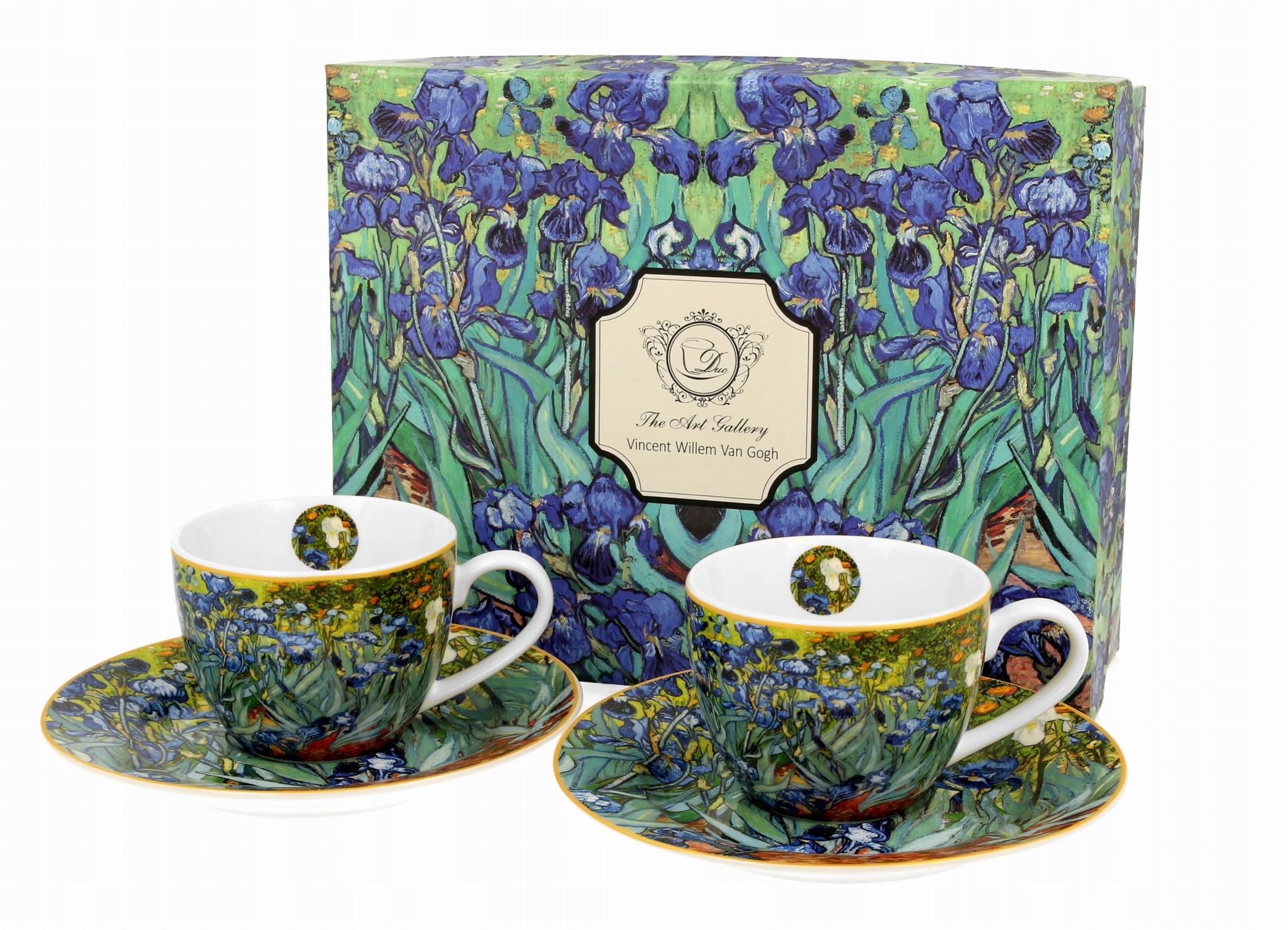 Две чашки для эспрессо объемом 110 мл с блюдцами Ирисы В. Ван Гога, часть серии Art Gallery, изготовлены из фарфора New Bone China, характеризуются элегантным и натуральный кремовый цвет - белый цвет с нежным блеском и исключительной стойкостью, сохраняя при этом легкость и нежность.