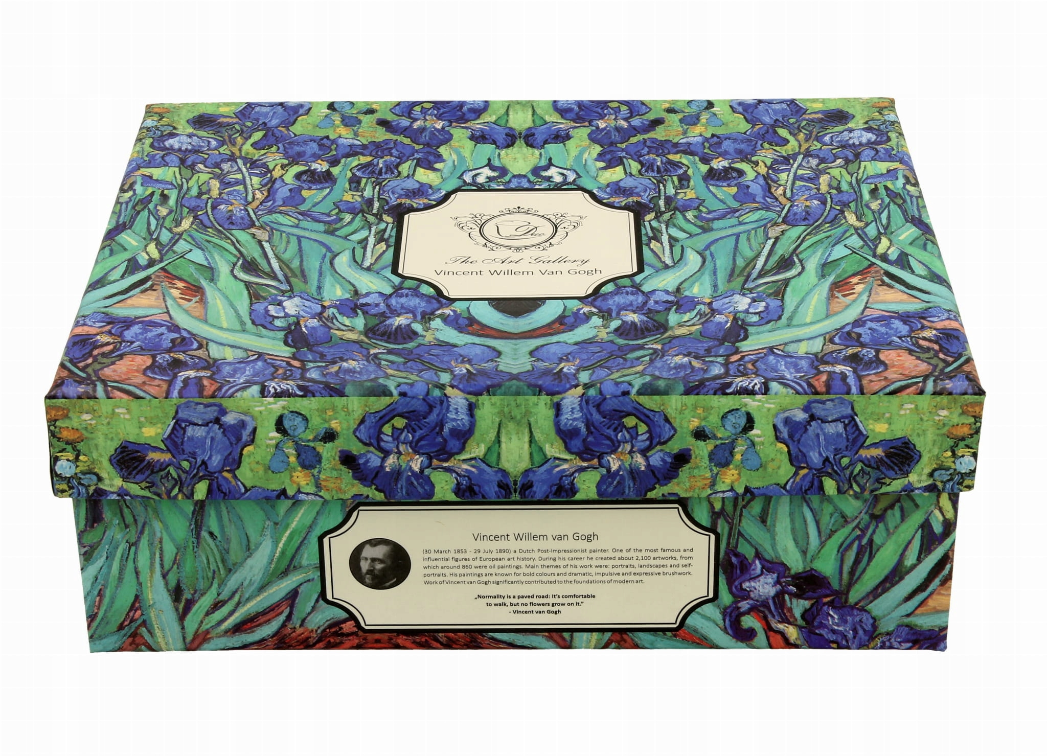 Картина «Ирисы» 1889 года Винсента Ван Гога было создано во время пребывания художника в психиатрической больнице. Узор на картине также является отражением увлечения Ван Гога японским искусством. В настоящее время картина находится в коллекции музея Дж. Пола Гетти в Лос-Анджелесе.