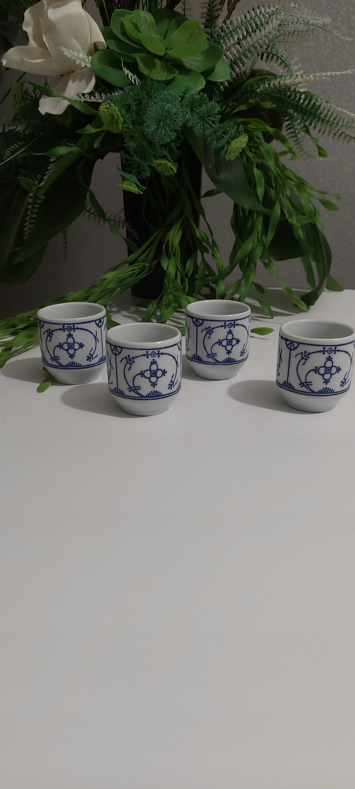 Четыре подставки для яиц, рисунок соломки, в очень хорошем состоянии, размеры: высота 5 см, диаметр 4,5 см.