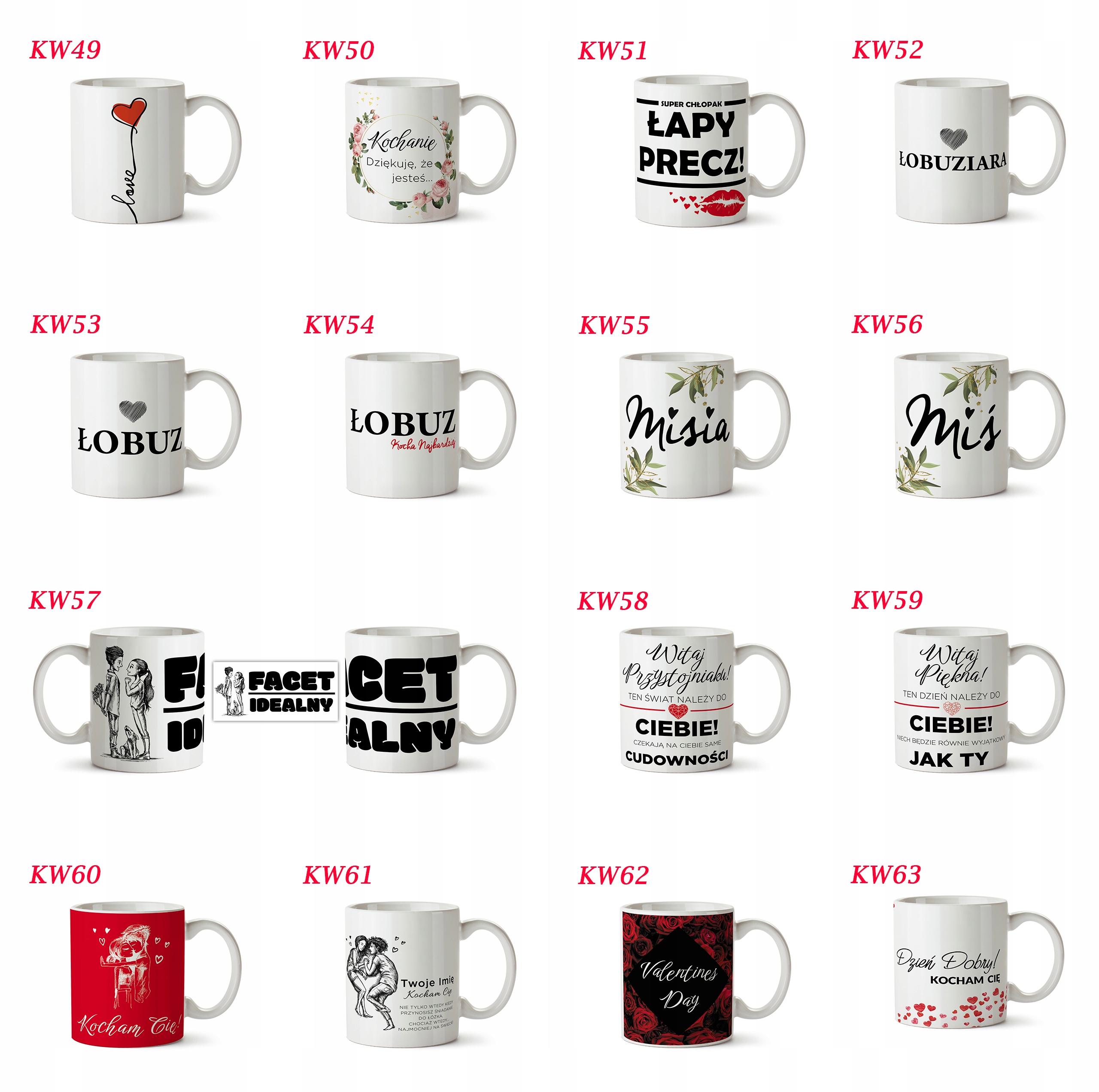 Kubki z nadrukiem WALENTYNKI DLA NIEJ PREZENT IMIĘ