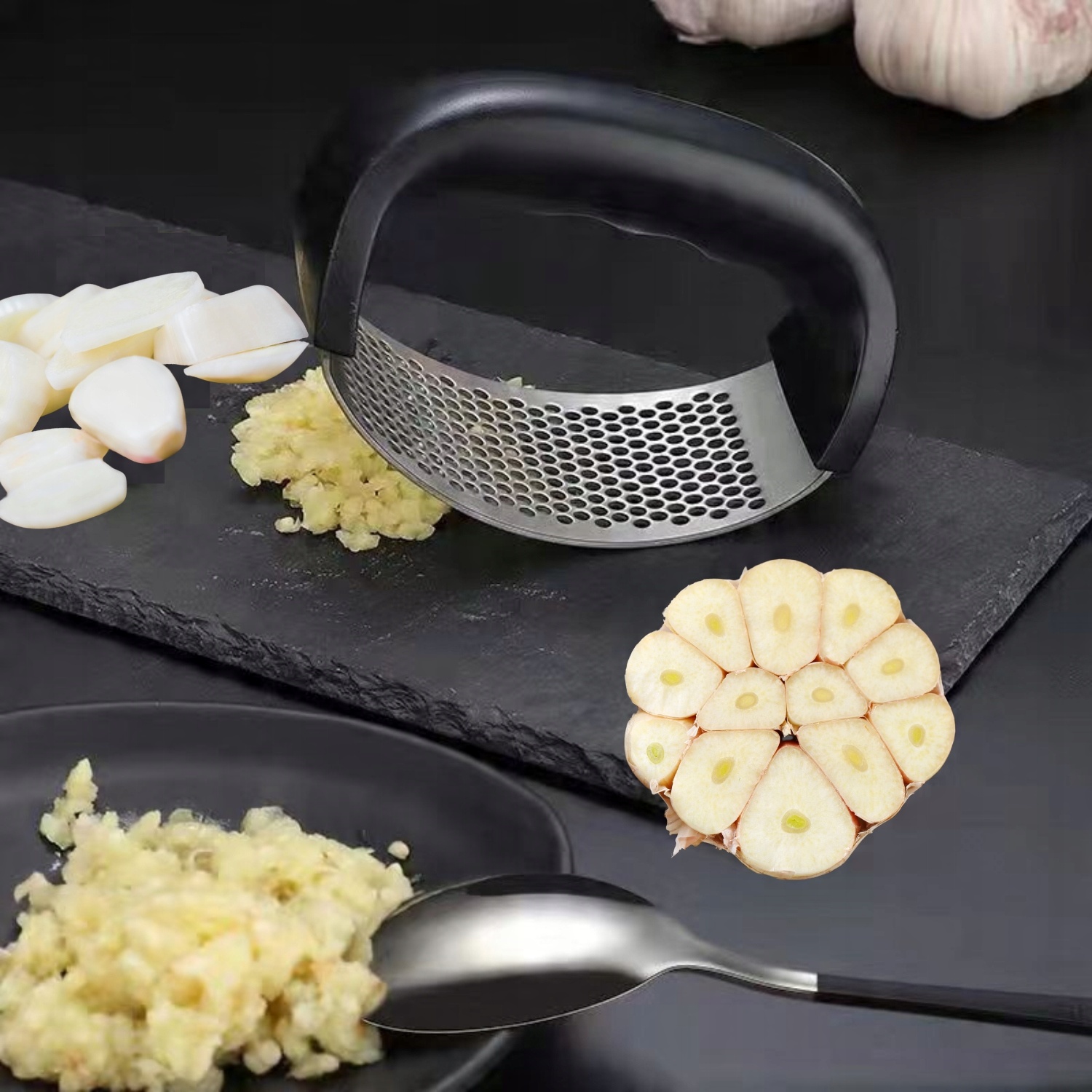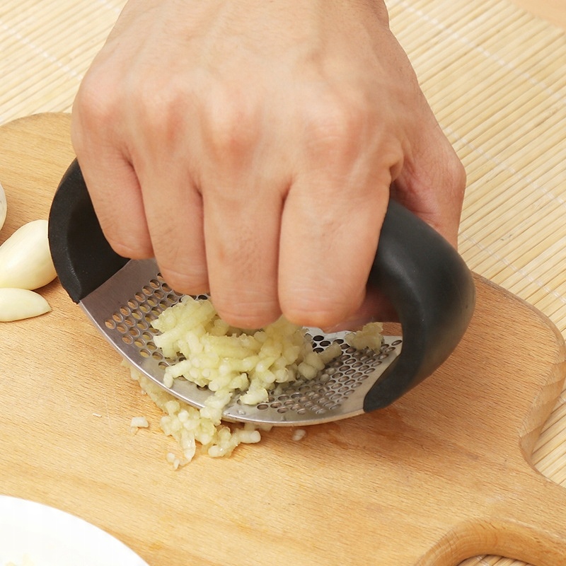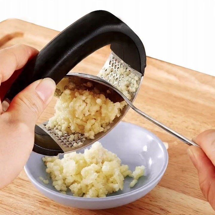 Пресс изготовлен из нержавеющей стали и прочного пластика, что обеспечивает его долгий срок службы. Его легко чистить: промойте его под проточной водой или поместите в посудомоечную машину. Пользоваться прессом очень просто. Просто разрежьте чеснок на более мелкие кусочки, положите его на плоскую и твердую поверхность, а затем раздавите прессом.