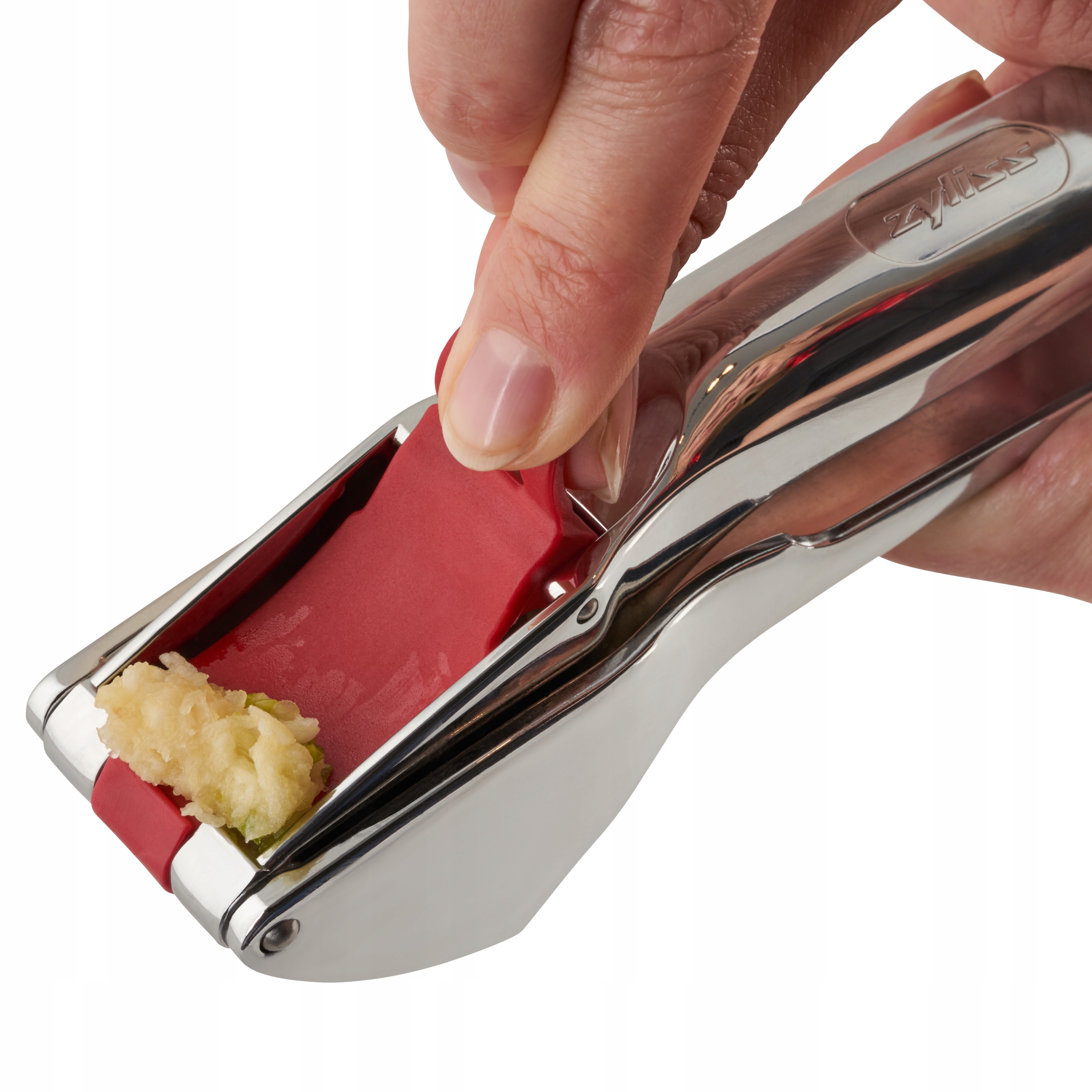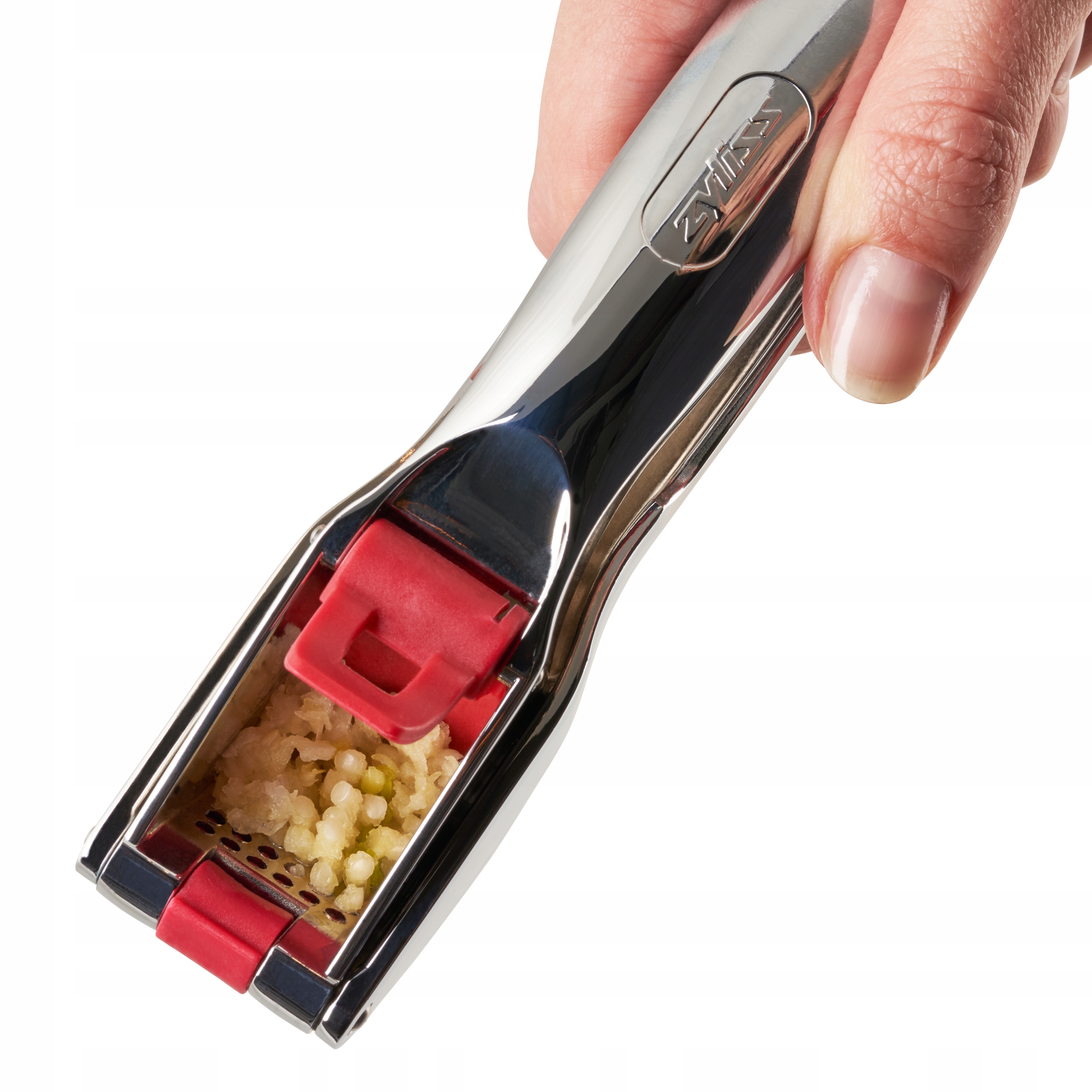 Пресс-пресс для чеснока Easy Release от Zyliss изготовлен из сплава цинка с хромовым покрытием. Он оснащен специальным пластиковым элементом, который позволяет легче выдавливать неочищенные зубчики чеснока, а затем легко перекладывать их прямо в емкость, чтобы руки вообще не касались чеснока. Этот уникальный дизайн защитит ваши руки от неприятных запахов.