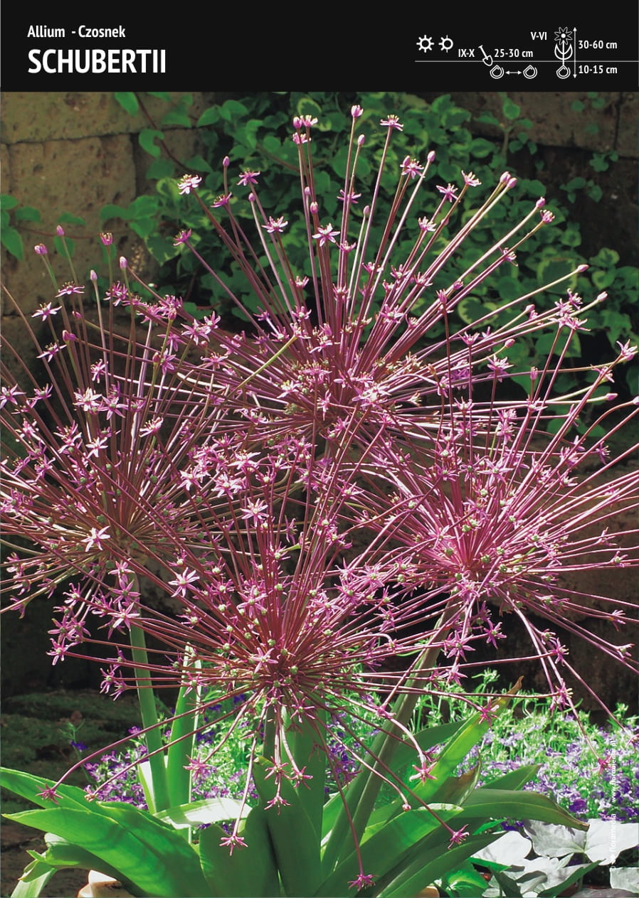 Чеснок Шуберта (лат. Allium schubertii) — сорт, вырастающий до 60 см в высоту, с соцветием, состоящим из расходящихся от центра тычинок, заканчивающихся мелкими цветками. Чеснок обычно цветет в мае-июне.
