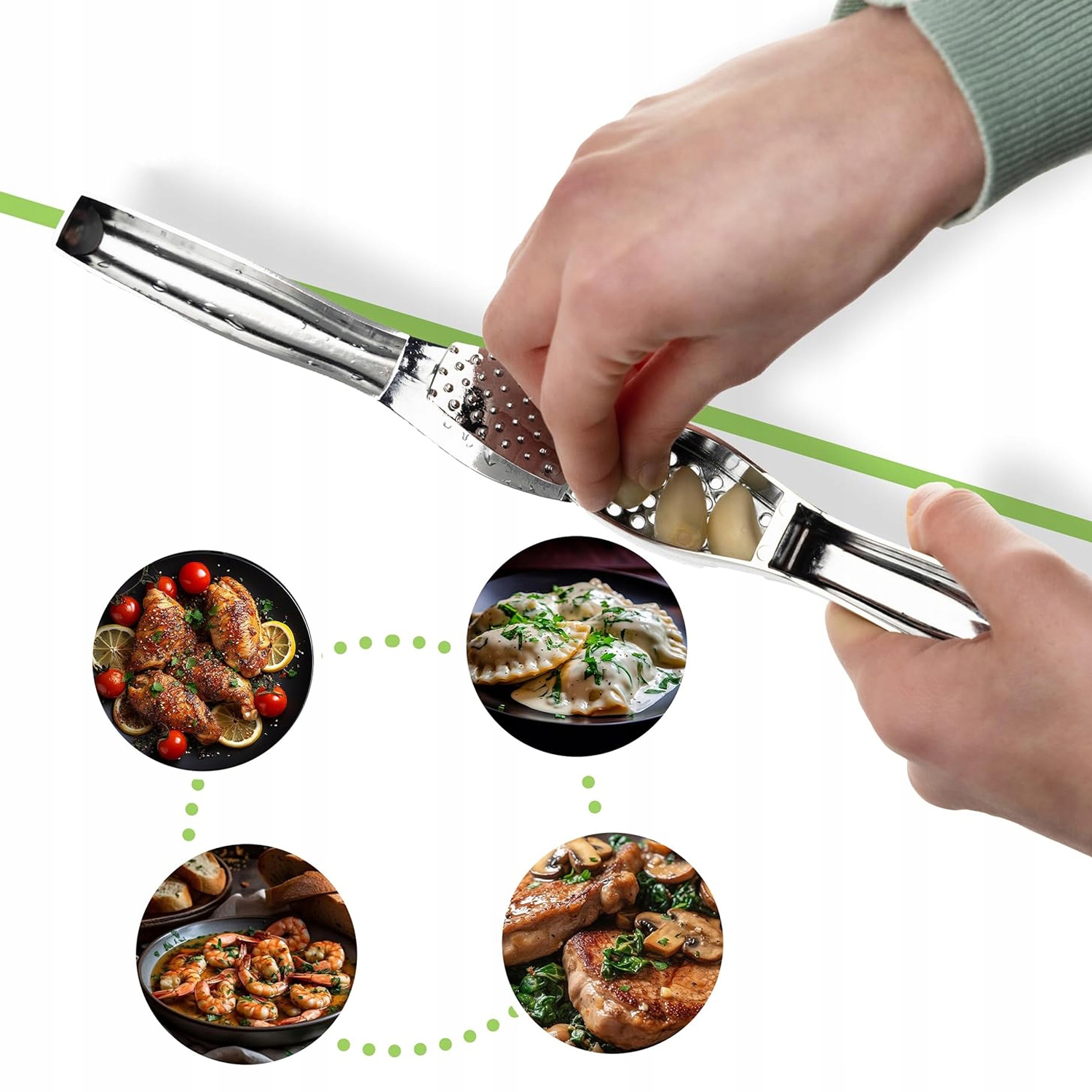 ➡ Вы хотите, чтобы ваша кухня работала легче и быстро подготовить чеснок для своих блюд? Чесночная пресса - идеальный выбор! Изготовлен из высококачественной нержавеющей стали для обеспечения долговечности и эффективности на вашей кухне. Эргономическая ручка облегчает использование, и ее долговечность делает его отличной инвестицией в течение многих лет. После сжимания просто удалите чеснок ложкой и положите в формирующее блюдо. После использования просто удалите остатки и вымойте продукт с помощью водопроводной воды с добавлением моющих средств. Используя экструдер, вы можете полностью использовать его потенциал. Чеснок легко раздавить. Благодаря этому многим блюдам будет вкуснее, и домашним поварам не придется беспокоиться о неприятном запахе на руках овощей
