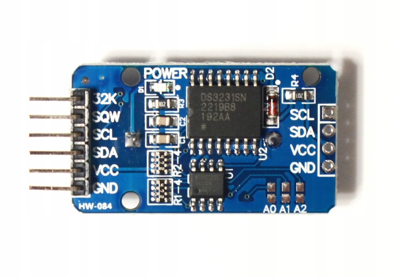 Очень точный модуль часов RTC, обменивающийся данными через шину I2C. По сравнению с системой DS1302, DS3231 имеет больший диапазон напряжения (2,3–5,5 В) и резервную батарею памяти. В отличие от DS1307, DS3231 имеет встроенный кварц, поэтому нет необходимости подключать внешний. Имеет 2 программируемых будильника.