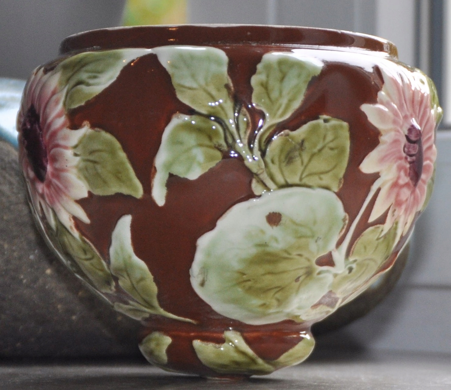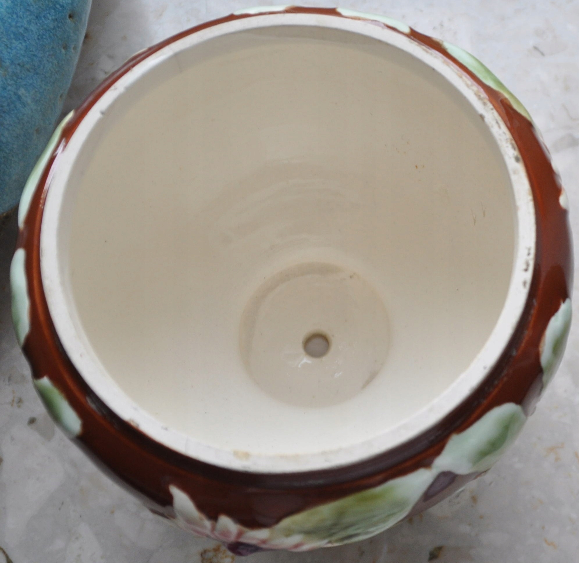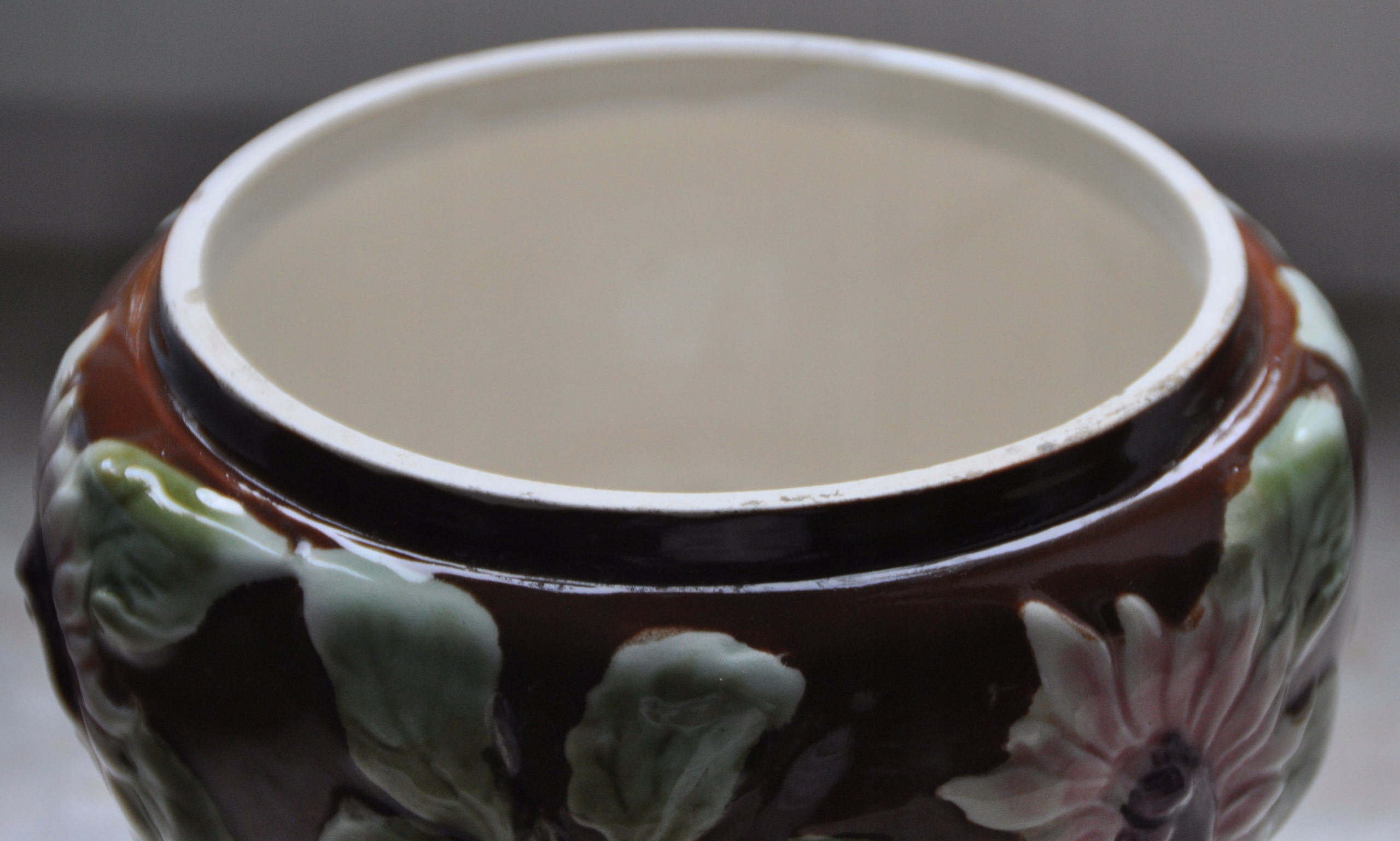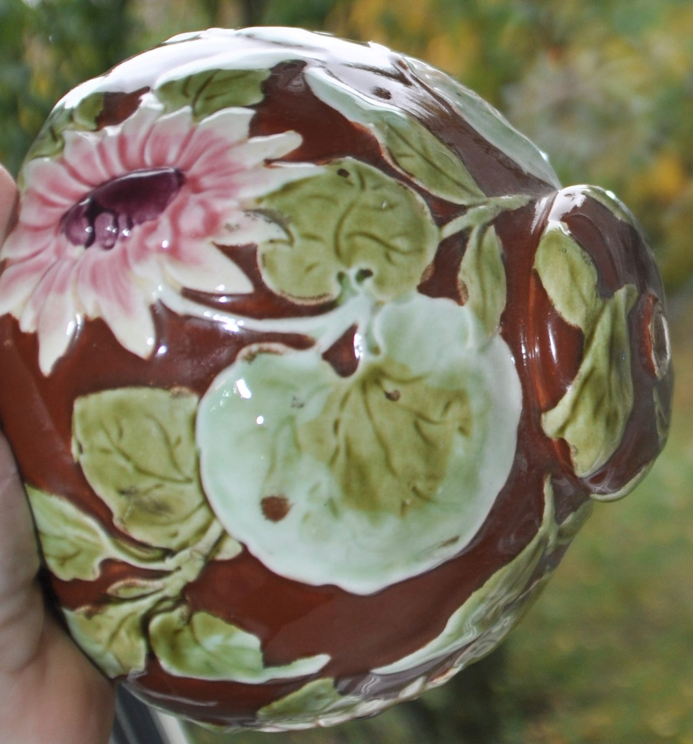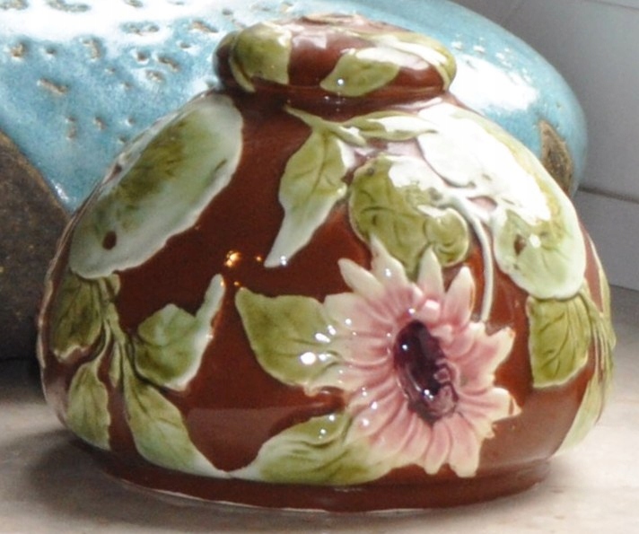 Часть масляной лампы - майолика с листьями и цветами, высота 12 см.