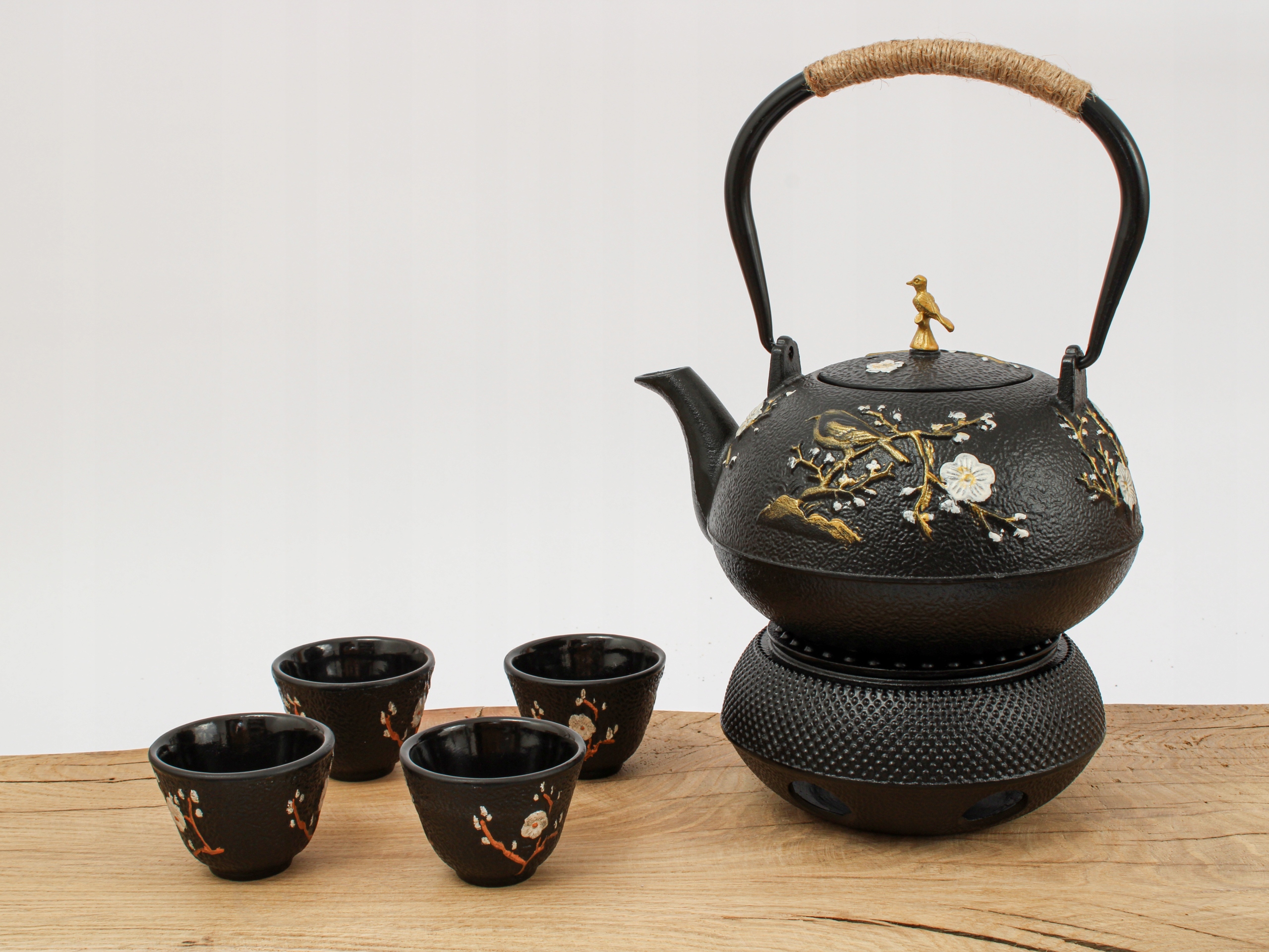 - color: black matte Cast iron 1000ml with lid, stainless infuser X1, cast iron cups 60ml X4 and stand X1