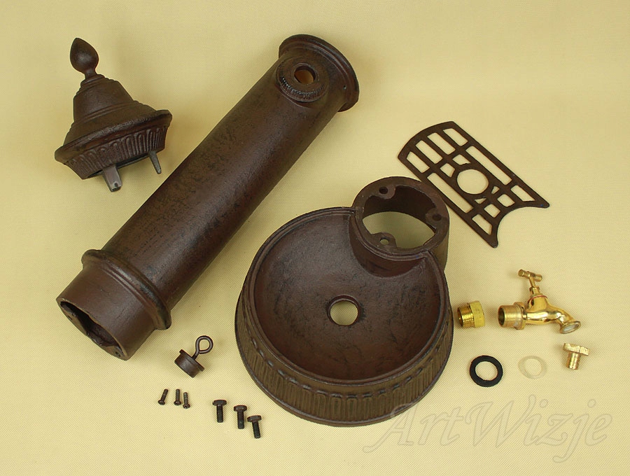 Чугунный столбик (раковина) темно-коричневого цвета с потертостями.