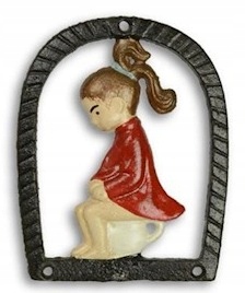 Предмет продажи - декоративная вывеска для туалета. Создан сегодня из чугуна. Он украсит и в веселой и игровой форме сообщит, что здесь есть место для заботы о ваших физиологических потребностях.