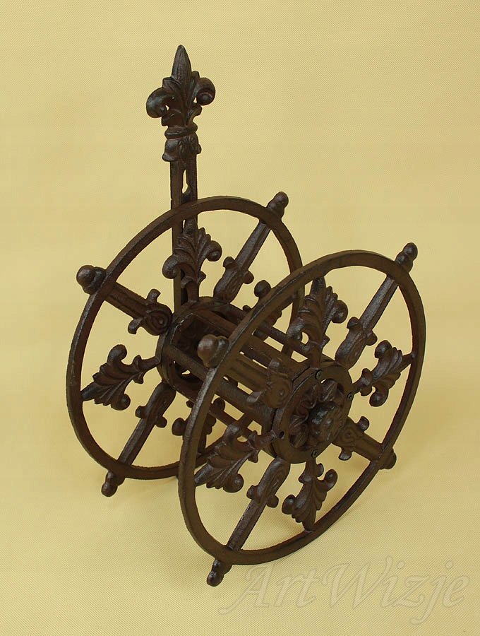 Чугунная ажурная вращающаяся вешалка для садового шланга.