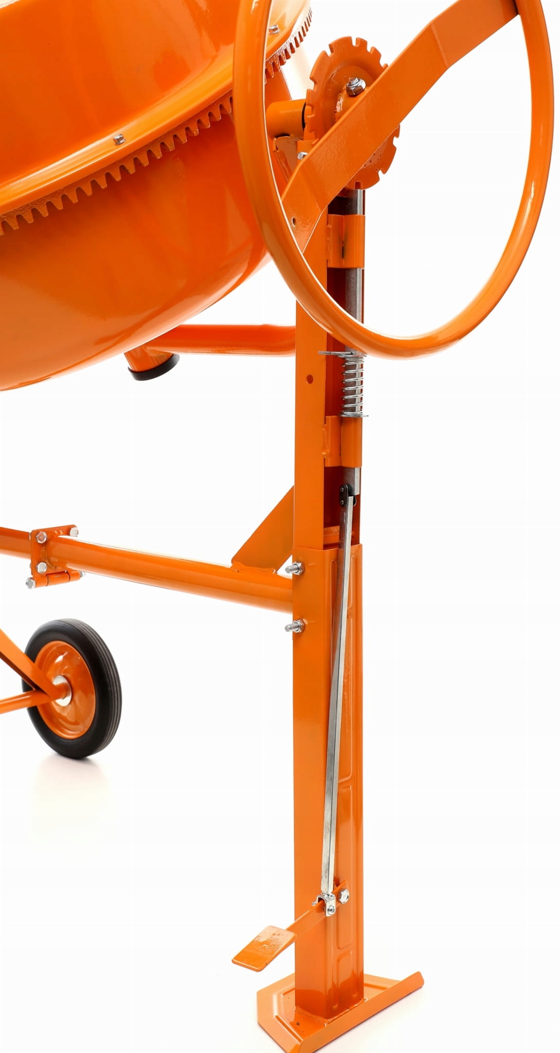 ✔️Механизм наклона, управляемый колесом со стопорным диском, позволяет удобно опорожнять барабан, а замок и ножной тормоз повышают контроль над устройством во время работы.