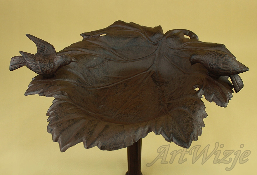 Поилка для птиц из коричневого чугуна, патинированная.