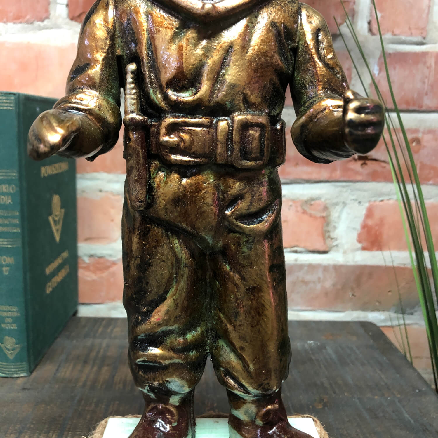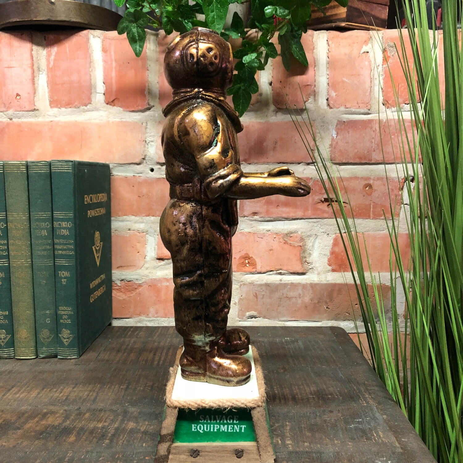 Статуэтка водолаза в ретро-стиле на деревянной основе - прекрасное украшение для вашей гостиной, комнаты или офиса. Эта очаровательная чугунная статуэтка придаст любому интерьеру элегантность и неповторимый стиль. Изготовлен из прочного чугуна и дерева, гарантирует длительную эксплуатацию. Золотистый цвет придает ему оригинальный и роскошный вид.