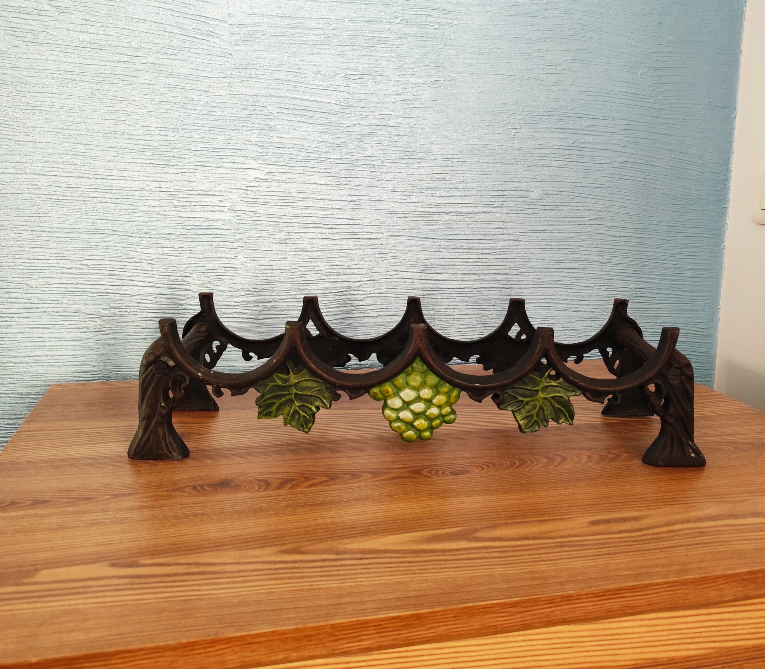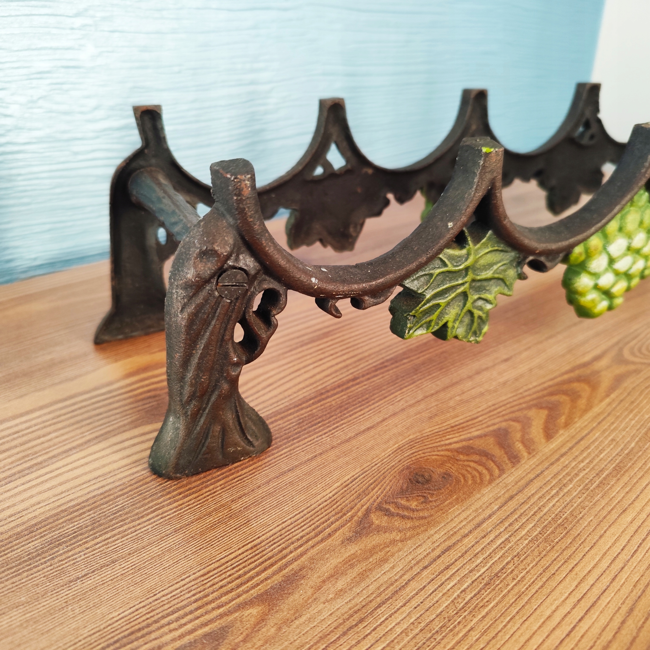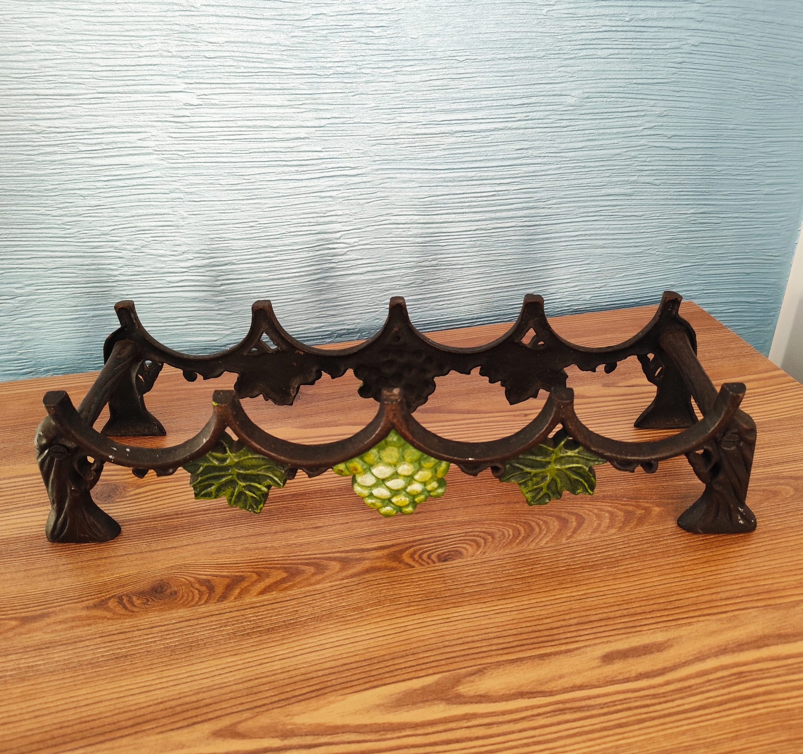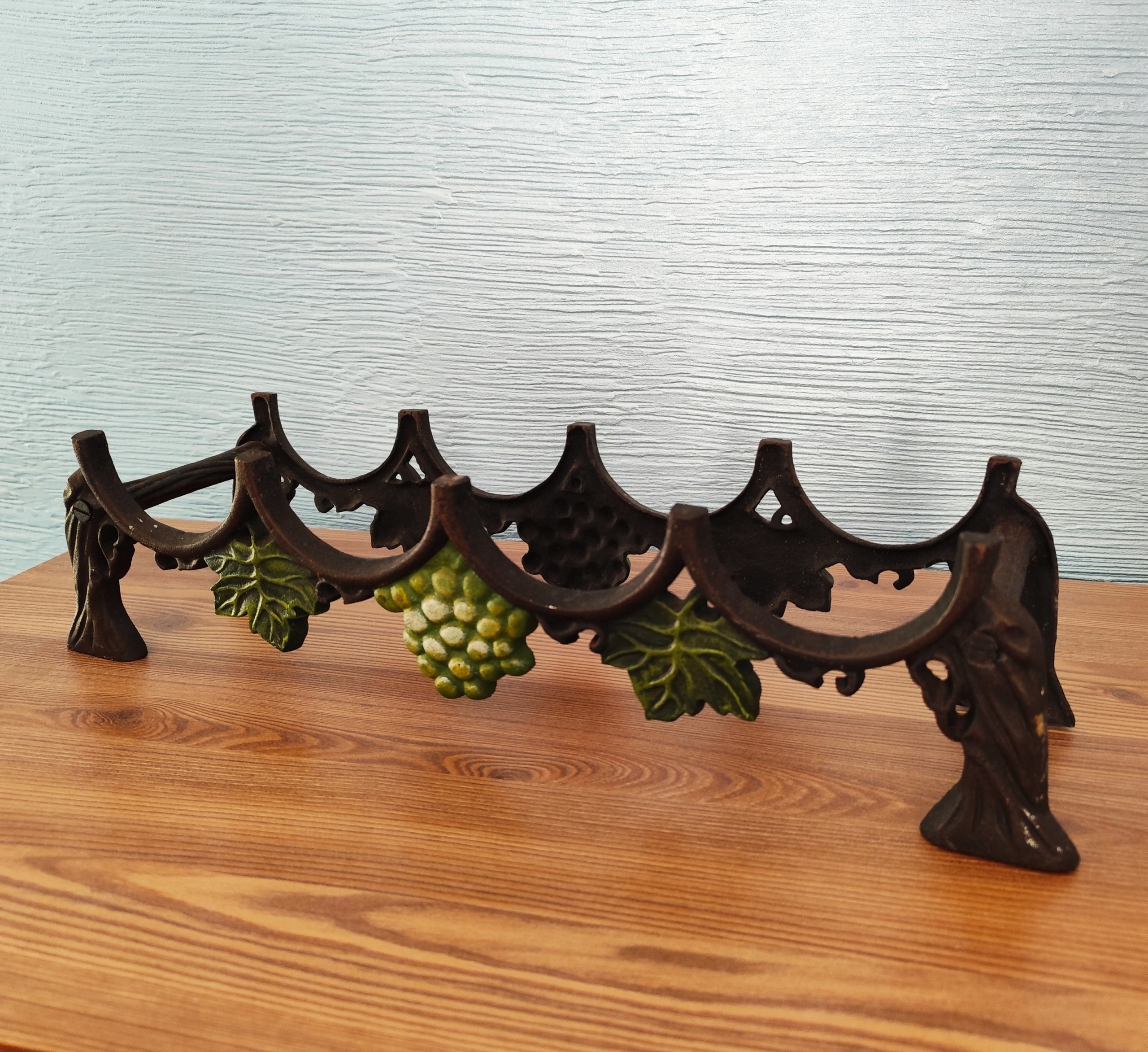 Чугунная полка на 4 бутылки, красивая винная полка с винтажным декором.