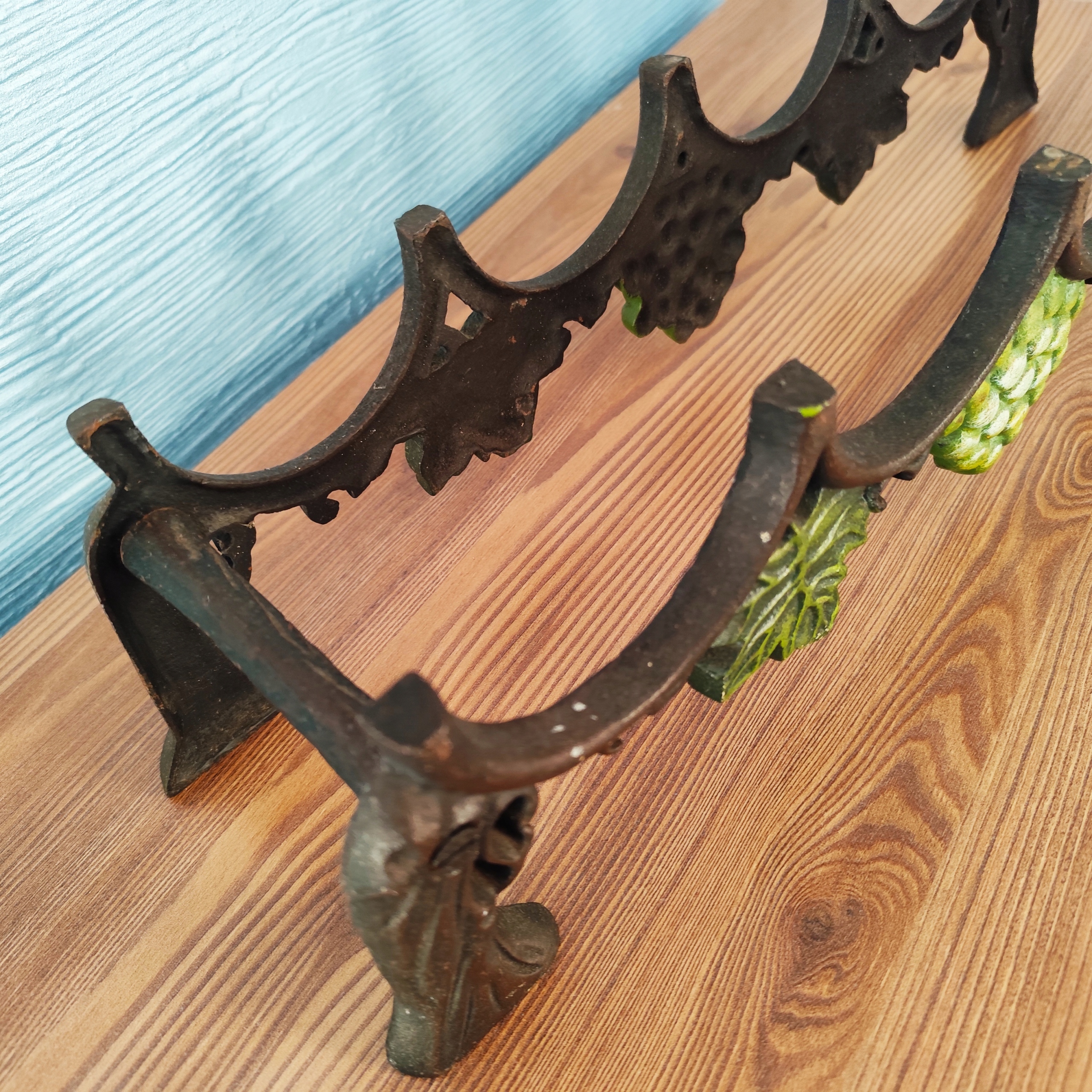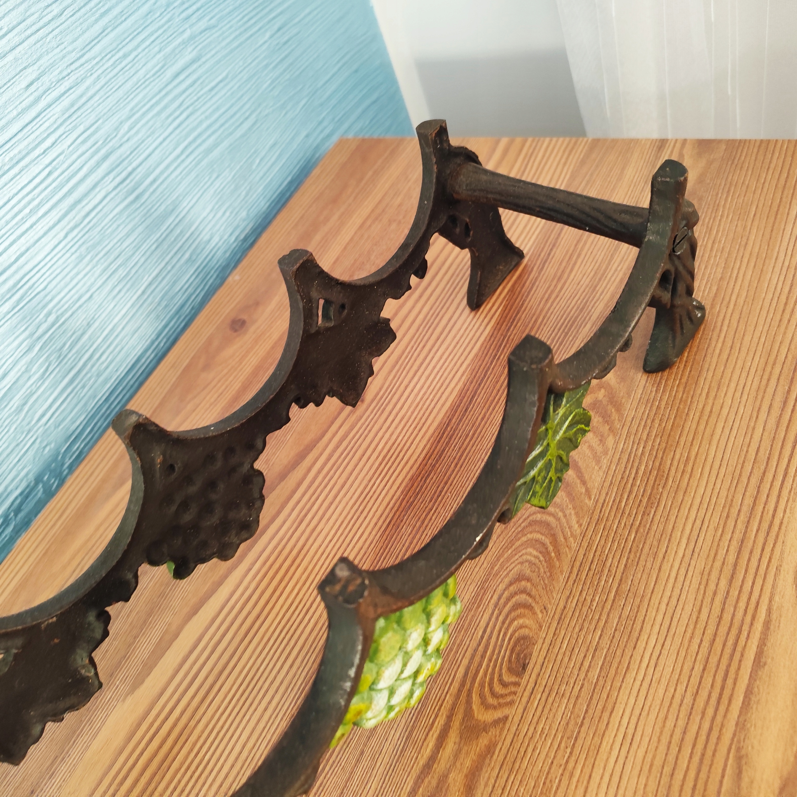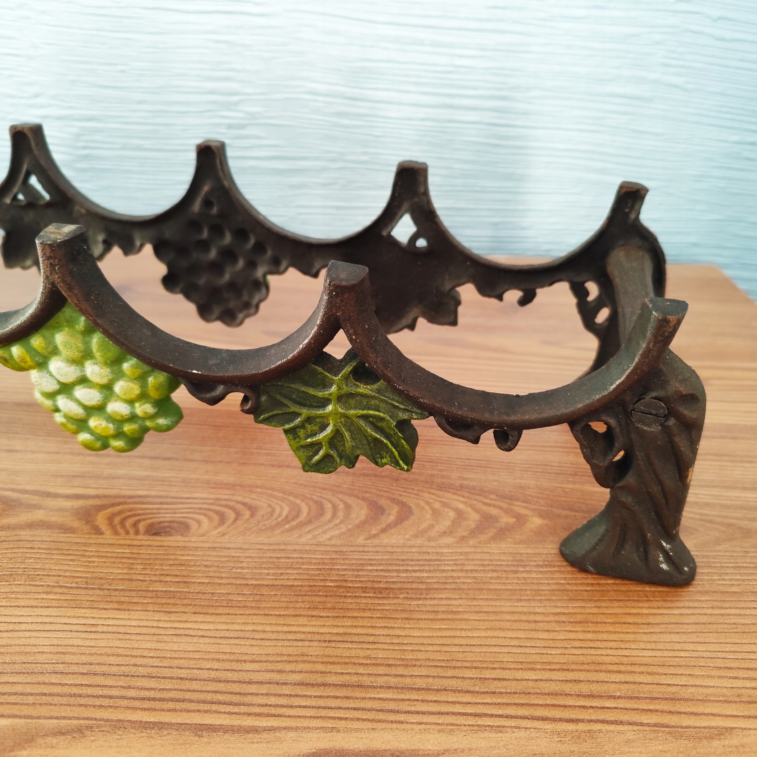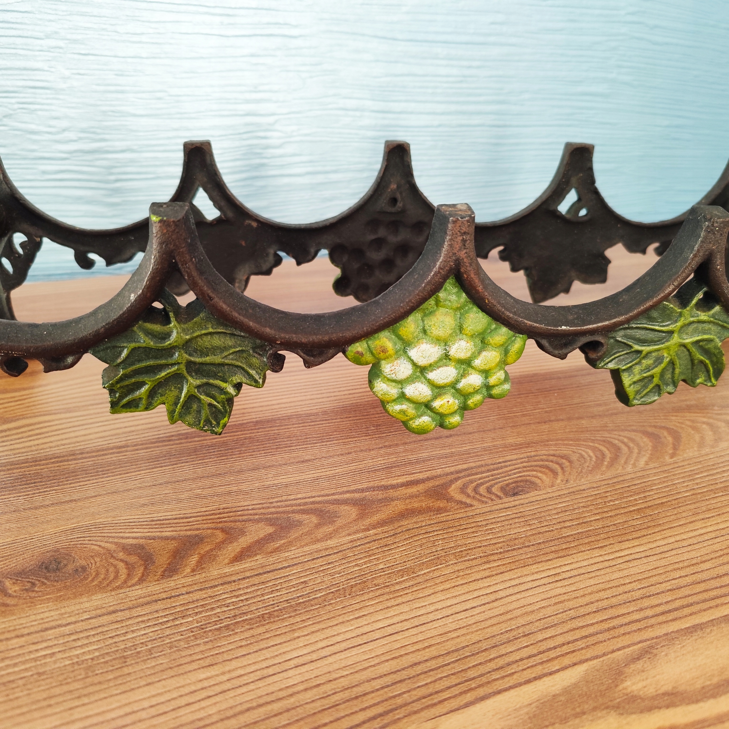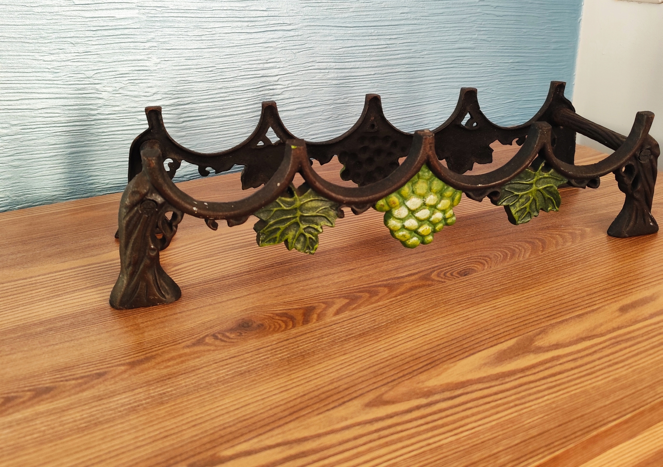 Чугунная полка на 4 бутылки, красивая винная полка с винтажным декором.