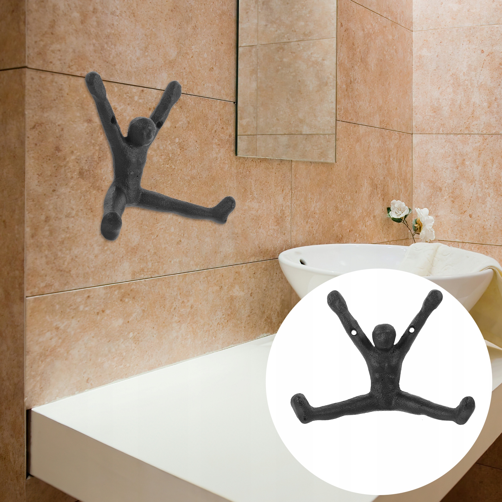 ✅ Крючок изготовлен из прочного чугуна, что практично и обеспечивает длительное использование.