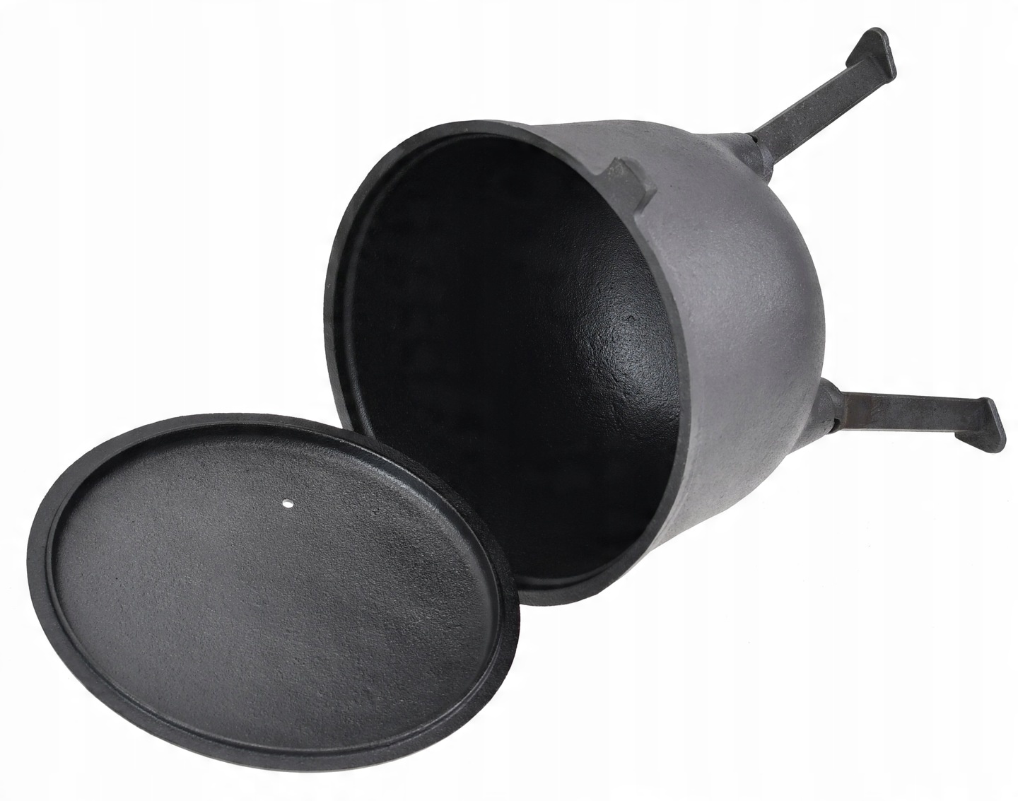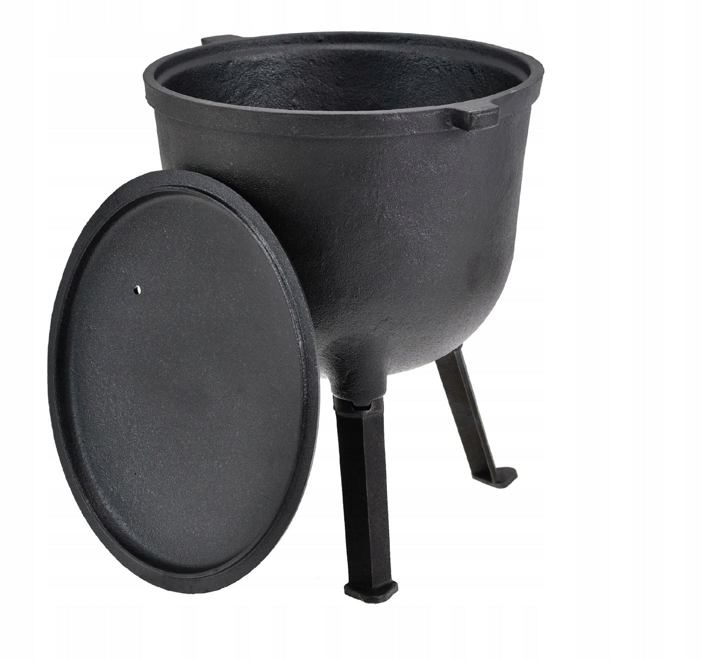 Казан можно стоять прямо на огне или подвешивать над огнем.