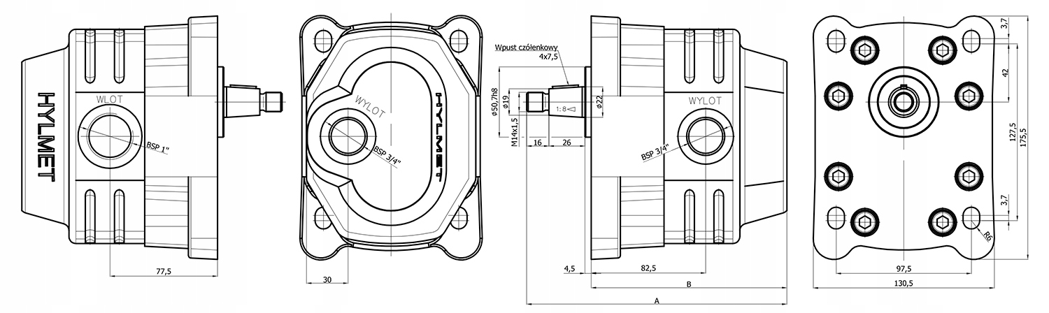 Расстояние между винтами крепления насоса: 97,5x127,5 мм