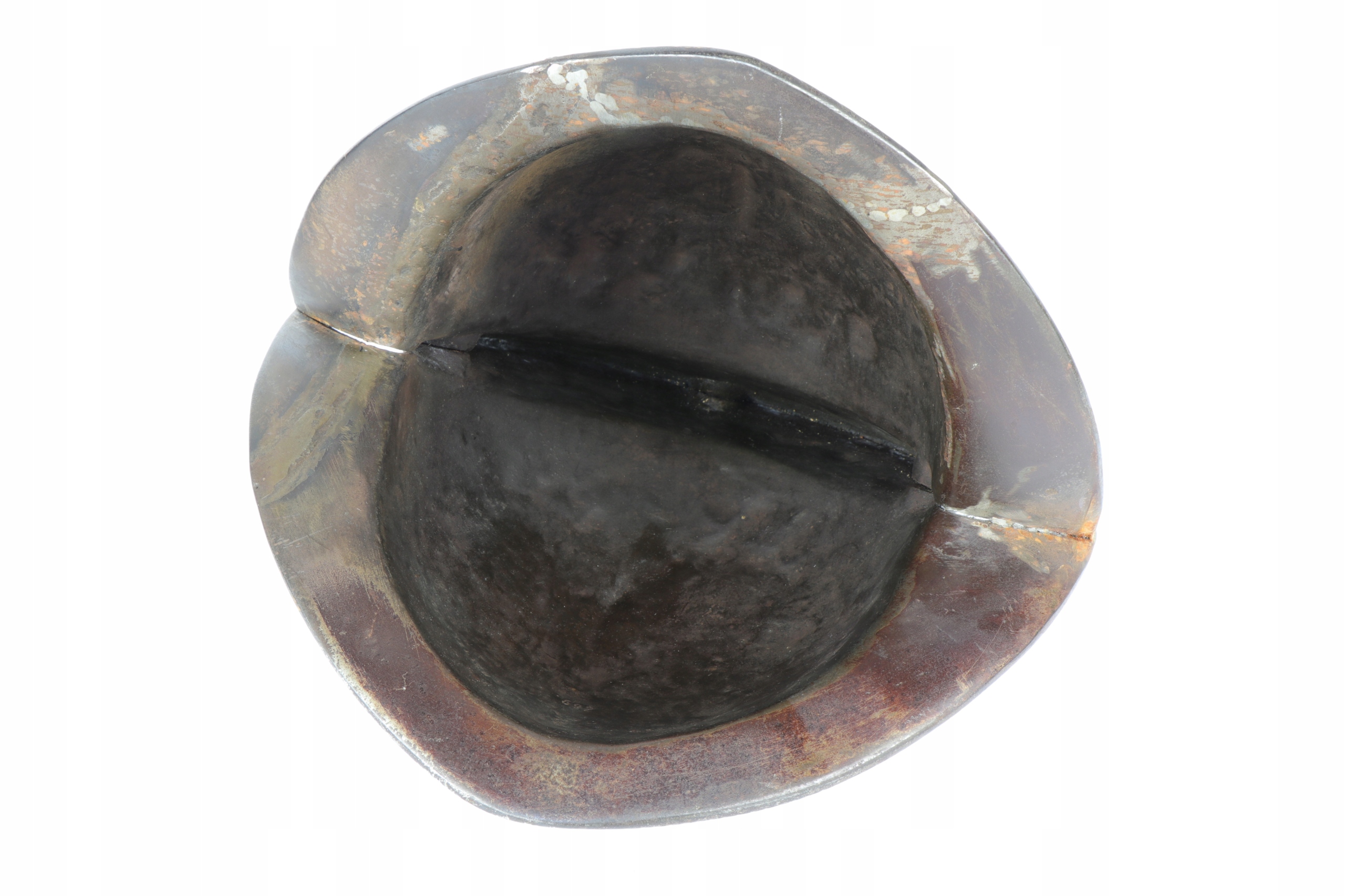 Как видно на фотографиях. На нижнем воротнике показаны два сварочных ремонта поврежденного треснувшего нижнего края шлема. В остальном состояние хорошее.