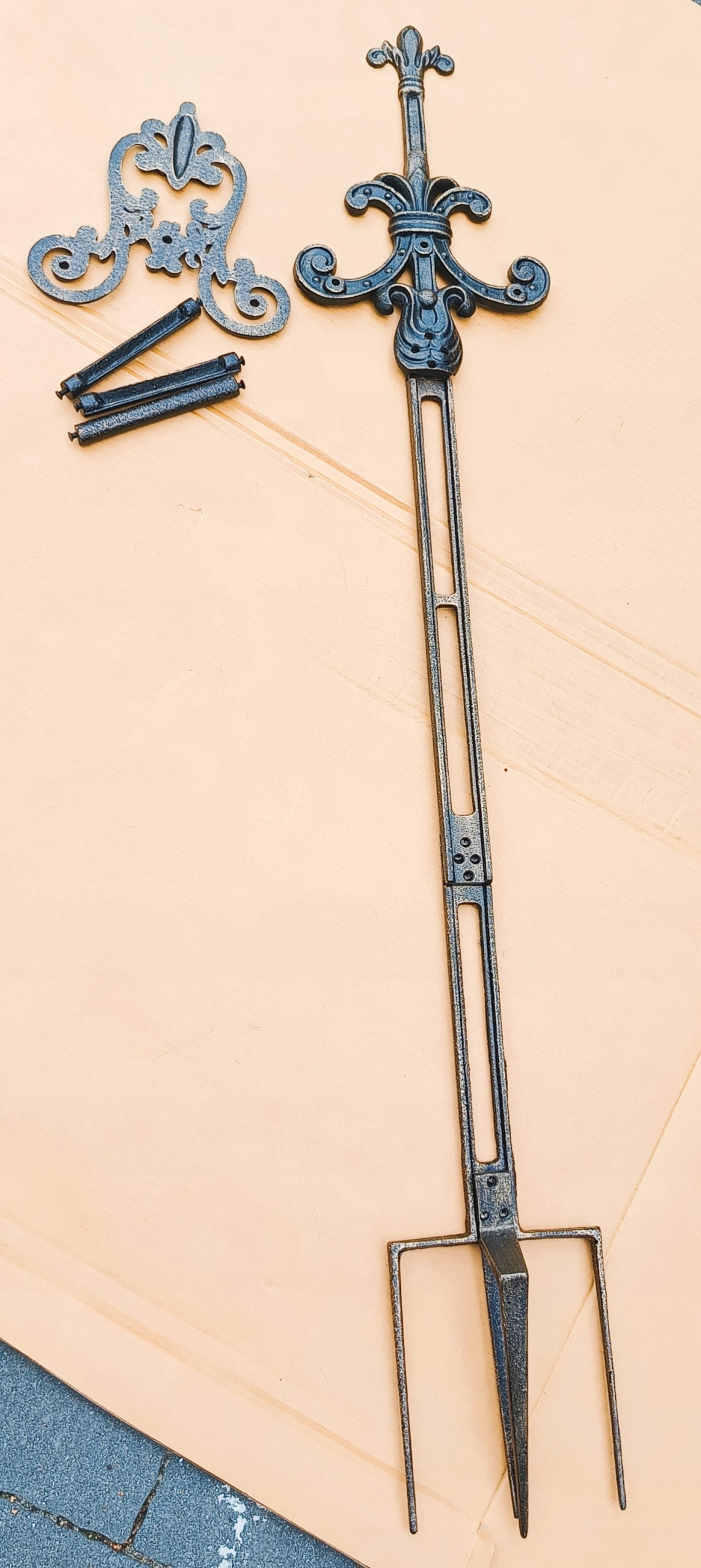 Вы ищете отдельно стоящую вешалку для садового шланга? Наш практичный держатель для шланга специально для вас! Благодаря 4 кольям вы легко сможете вбить этот столб в землю. Закругленная ручка идеально повторяет форму намотанного шланга. Наша чугунная вешалка с декоративным орнаментом очень прочная и позволяет повесить шланг весом до 10 кг. Эта подставка для катушки со шлангом представляет собой одновременно функциональный гаджет и украшение.
