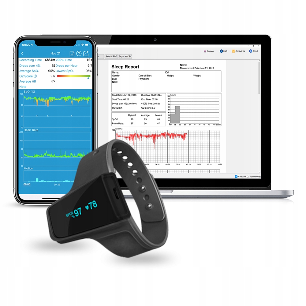 Checkme O2 Max ™ - самый продвинутый монитор сна, который каждые 2 секунды. Он контролирует уровень кислорода в крови и оповещения с помощью вибрации апноэ. Он обеспечивает анализ в ходе, благодаря мониторинге кислорода, частоты сердечных сокращений и движения тела. Вы можете легко проверить результаты на вашем смартфоне или компьютере с помощью бесплатных приложений.
