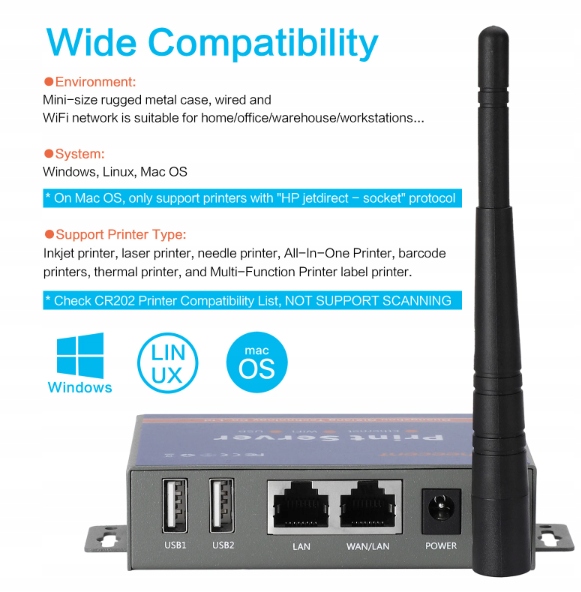 Cheecent Print Server CR202 12V-1A DC ( 7.5-32V )
